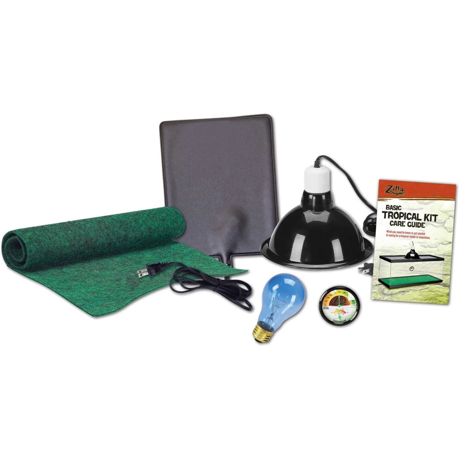 - Complete kit lets you get started raising tropical-dwelling reptiles from juveniles, with glass enclosure, substrate liner, light and heated mat, gauge and set-up guide.