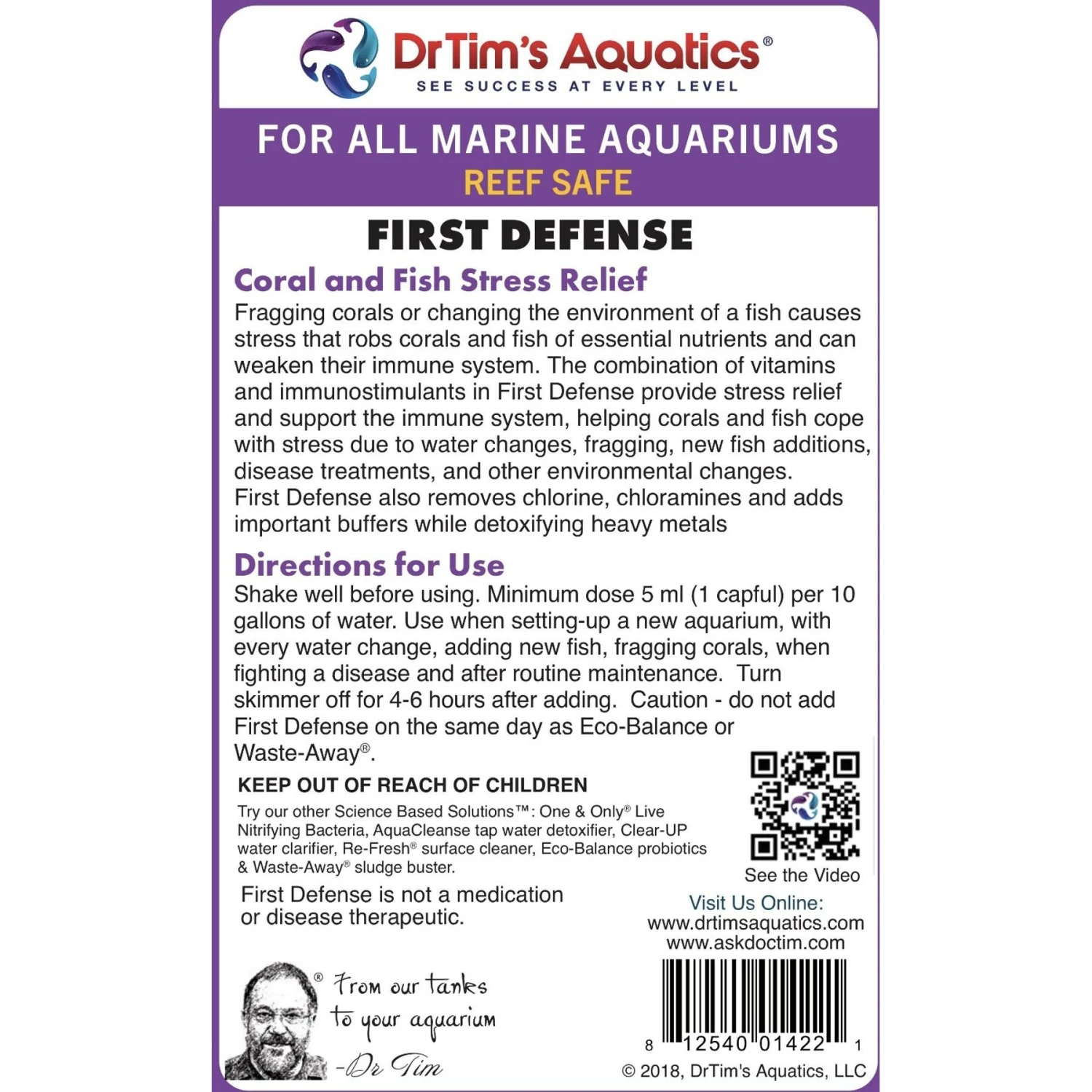 Create a moment of zen for your aquatic pals with Dr. Tim’s Aquatics Reef First Defense Aquarium Cleaner. This cleaner is designed to help your fish and corals adapt to a new environment by reducing stress and promoting healthy immune systems. It contains a mixture of vitamins and immuno-stimulants to help fish fight off infections and repair injuries. It’s designed to detoxify heavy metals and remove harmful chemicals from the water. This formula is safe for all types of coral and invertebrates—and it’s great for helping coral repair after fragging. It’s an ideal solution for bringing fishy friends home to a new tank or any time you make changes to the tank’s environment.