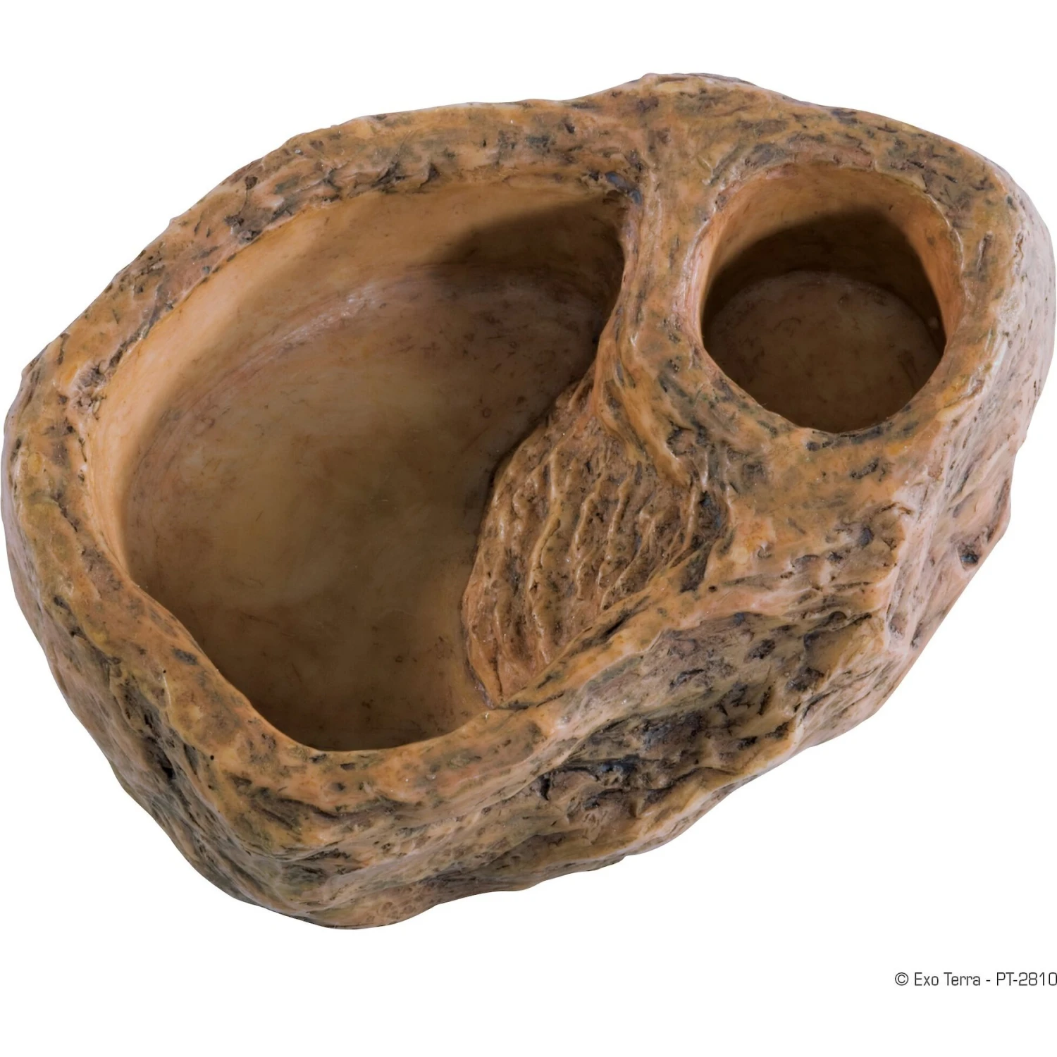 The Exo Terra Gecko Dish provides your pet pal with a proper vessel for all his nutritional needs! Resistant to harmful bacteria, its’ smooth, non-porous surface is easy to clean whenever needed. The two-in-one design features a smaller compartment for food, nectar, mashed fruit and supplements, while the larger compartment holds fresh drinking water, complete with built-in safety steps to help prevent drowning. The natural look easily fits in just about any type of environment and the stable construction means that your mini mate will have a place to enjoy his meals for a long time to come.