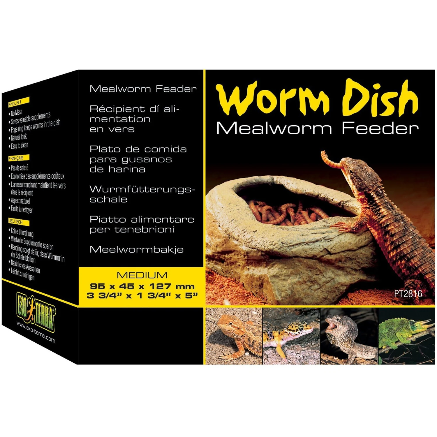 Make eating a less laborious task for your reptile with Exo Terra’s Mealworm Feeding Dish! This realistic-looking faux rock dish not only holds your pet’s mealworms in one confined area, but it also helps stop them from escaping, all thanks to the specially designed edge ring. When it comes time to clean the Mealworm Feeding Dish, simply lift off the top ring to access every inch. This ring also helps reduce the amount of mess in your sidekick’s terrarium, which means less cleanup for you!