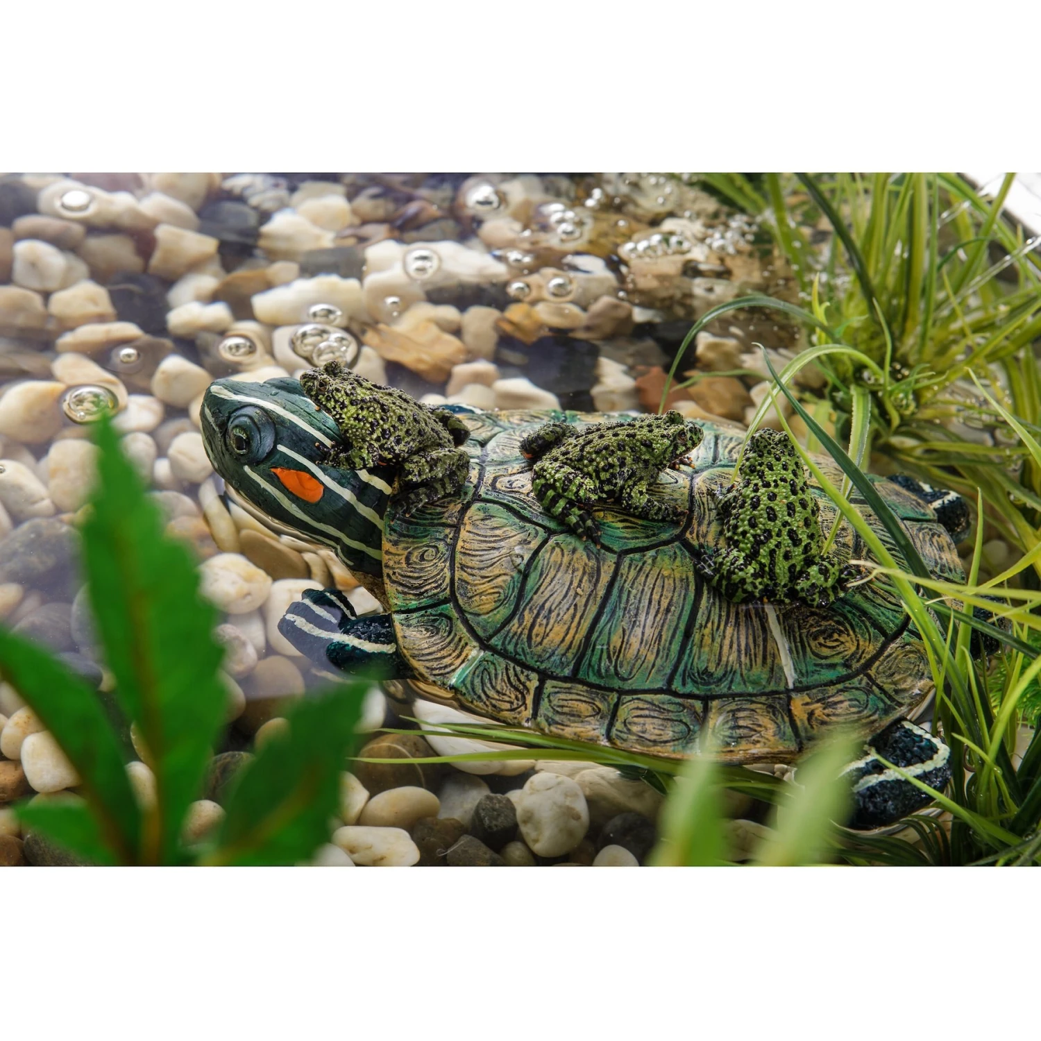 The Exo Terra Turtle-Turtle Island Reptile Terrarium Ornament gives your critter friend a new way to spend his day! Designed to be a replica of its natural counterpart, it is ideal for semi-aquatic animals such as turtles, newts and salamanders. A suction cup provides secure mounting while the easy grip texture makes it easy for your scaly-wag to climb aboard! He’ll love his new basking spot, where he can rest, relax and self-regulate his body temperature.
