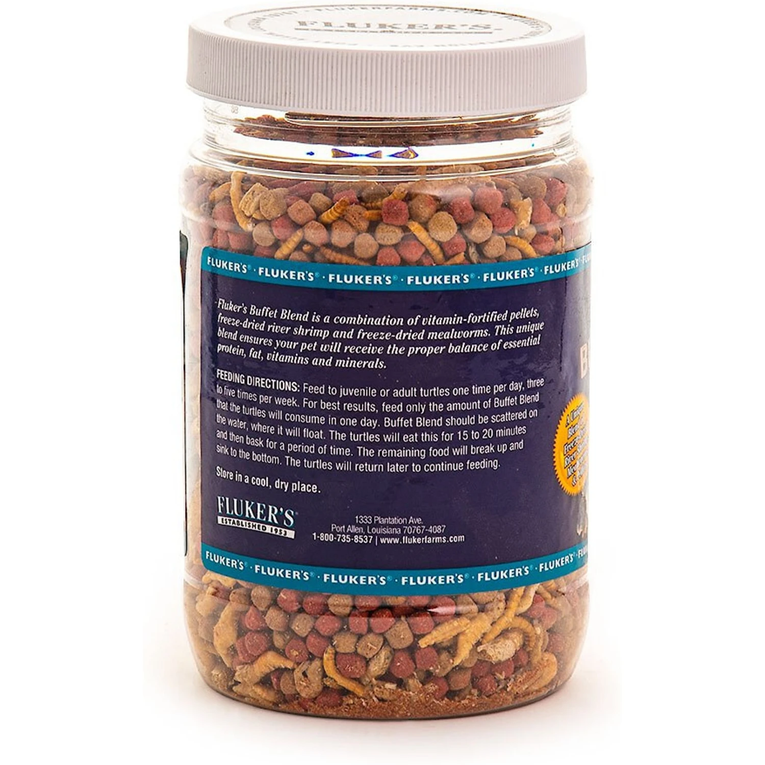 It’s extremely important that our shelled friends get all the vitamins and minerals they need—that’s where Fluker’s Buffet Blend for Aquatic Turtles comes in. This combination of vitamin-fortified pellets, freeze dried river shrimp, and freeze dried mealworms ensures your aquatic turtle is well-fortified. The proper blend of essential protein, fat, vitamins, and minerals is all packed into a balanced, easy-to-feed pellet. This is also great for use with aquatic turtles.