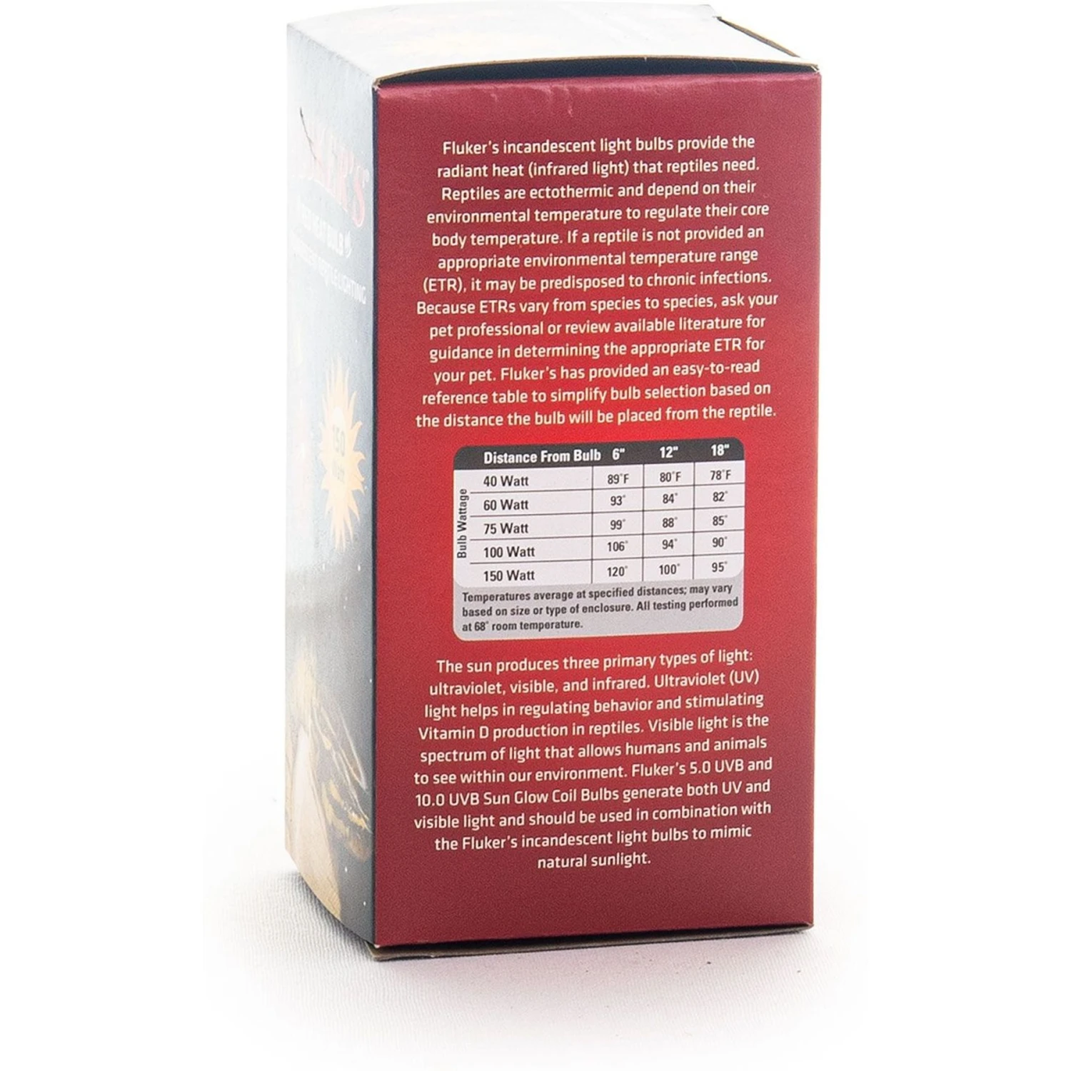The Fluker’s Nighttime Red Heat Reptile Bulb is invisible to your reptile, so you can watch your critter without disturbing his day and night cycle. It’s perfect for viewing and heating nocturnal reptiles and amphibians. Pair it with a Fluker’s daylight bulb (sold separately) to create a natural day and night cycle for nocturnal and diurnal reptiles. This is also great for use with aquatic turtles, terrestrial turtles, tortoises, aquatic amphibians, terrestrial amphibians, invertebrates, lizards, and snakes.