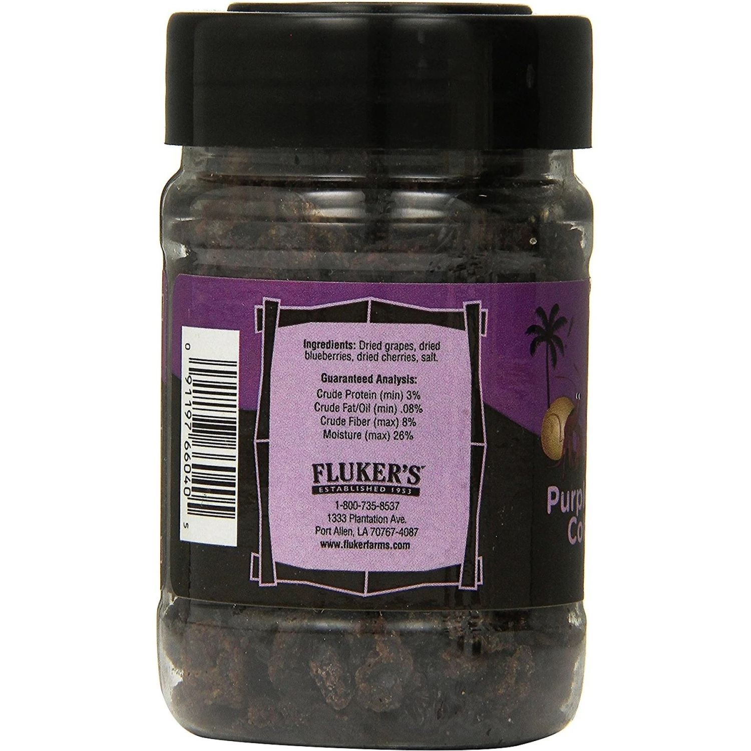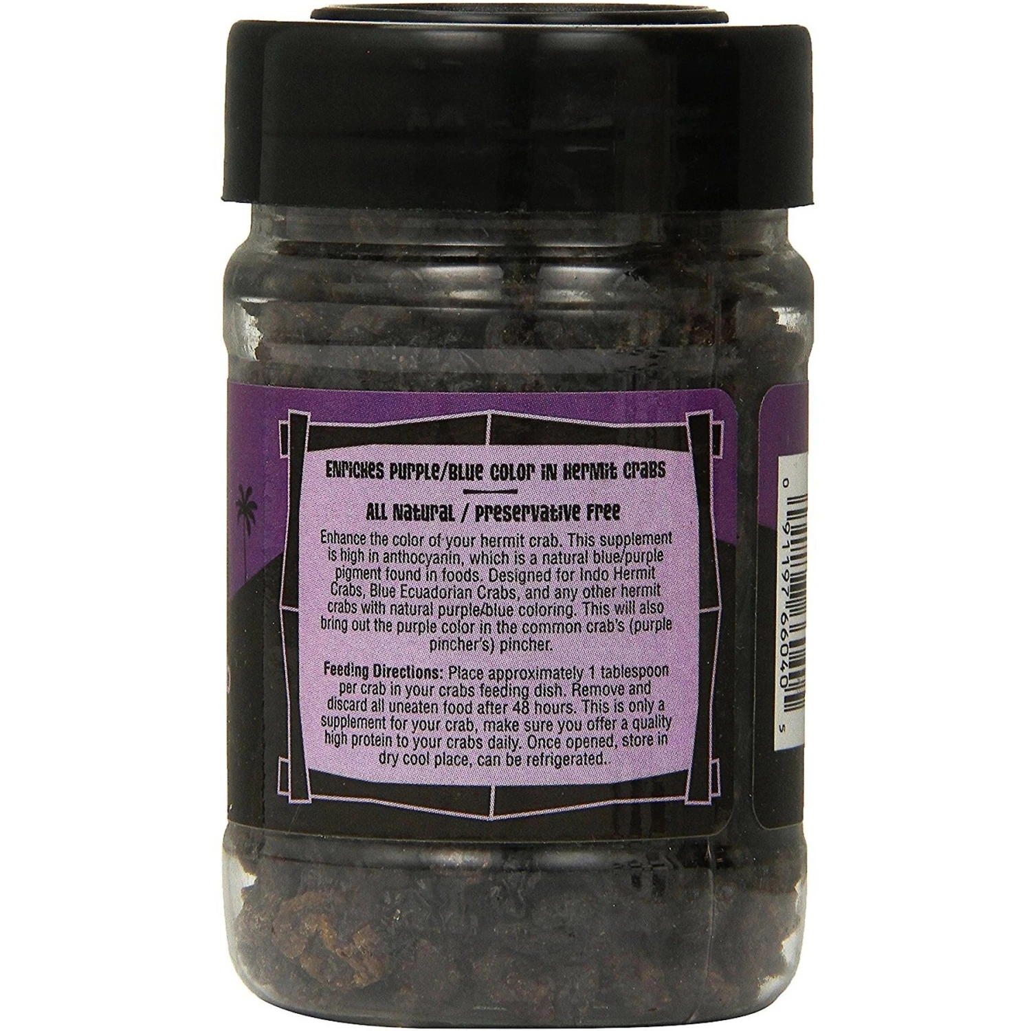 Fluker’s Purple Color Enhancer Hermit Crab Treats help bring out the brightest purple in your hermit crab’s coloration. These treats are high in anthocyanin, a natural blue/purple pigment found in blueberries, purple grapes, eggplant and cherries. They’re perfect for Indio hermit crabs, Blue Ecuadorian crabs and other hermit crabs with natural purple or blue coloring, and can also be used to enhance the purple color in the common crab’s legs. This is also great for use with invertebrates.