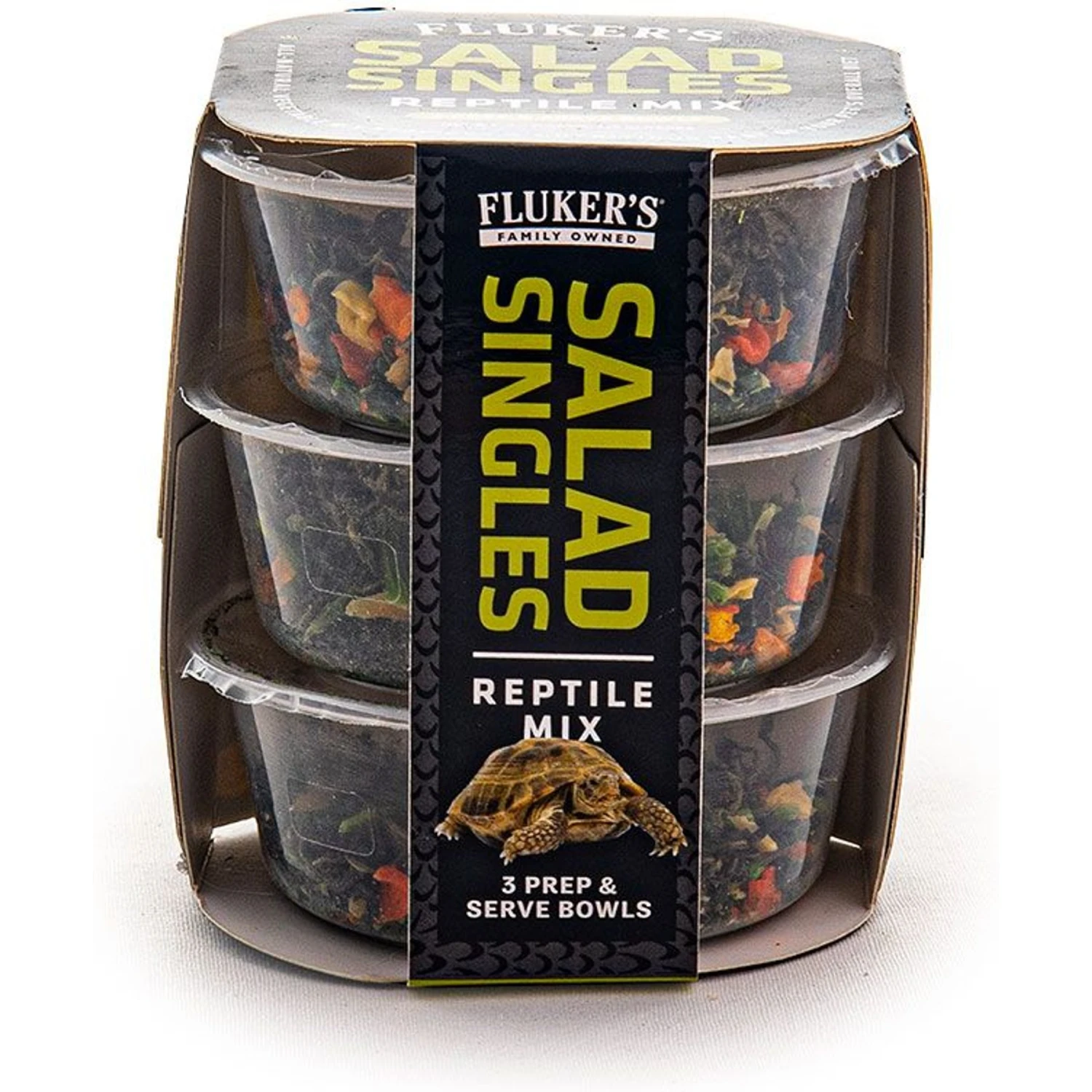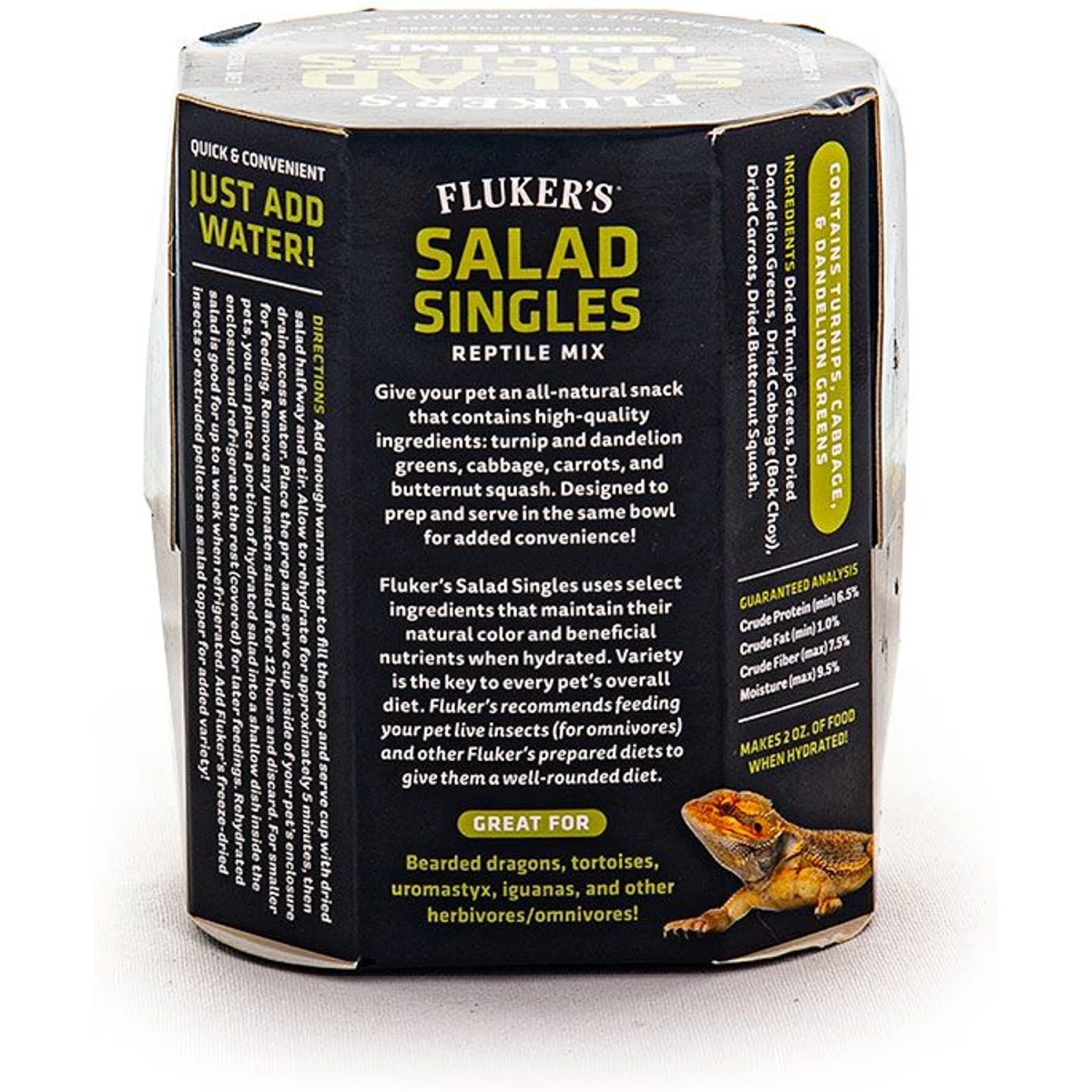 Good nutrition is fast and easy with Fluker’s Salad Singles Reptile Mix Reptile Food! This all-natural food mix features a mix of high-quality vegetables, including turnips, cabbage, dandelion greens, carrots and squash. Each salad is carefully dried to maintain its natural color and nutrients. To prepare, simply add water and stir. Fluker’s Salad Singles are great for bearded dragons, tortoises, uromastyx, iguanas and other herbivores or omnivores. Feed with live insects, Fluker’s dried insects or prepared diets (each sold separately) as part of a balanced diet. This is also great for use with tortoises, terrestrial turtles, and lizards.