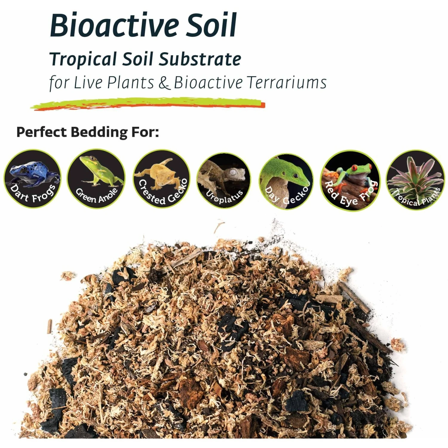 Create a comfortable habitat for your reptile friends with Galapagos Bioactive Soil Tropical Soil Substrate Reptile Bedding. Made using tree fern, fir bark, tropicoco soil, sphagnum moss and charcoal—this substrate has the optimal balance of drainage and moisture retention that reptiles and tropical plants need to thrive. It’s a terrific choice for bioactive terrariums, live plant terrariums or tropical house plants. This is also great for use with tortoises, terrestrial turtles, aquatic amphibians, terrestrial amphibians, invertebrates, lizards, and snakes.