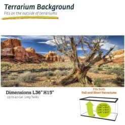 Bring your terrarium to life with a Galapagos Terrarium cling! Printed with vivid high-resolution imagery, these clings are easy to apply and remove without any adhesive––so there’s no sticky mess left behind. Available in eight different styles including woodland, arid, tropical, temple, forest, desert, mangrove or aquatic plant. This is also great for use with aquatic turtles, terrestrial turtles, tortoises, aquatic amphibians, terrestrial amphibians, invertebrates, lizards, and snakes.