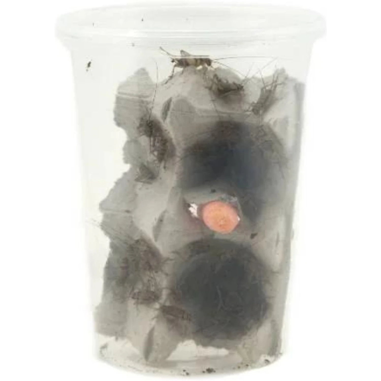 - Includes one-inch banded crickets, giant mealworms, black soldier fly larvae and a hornworms habitat cup.