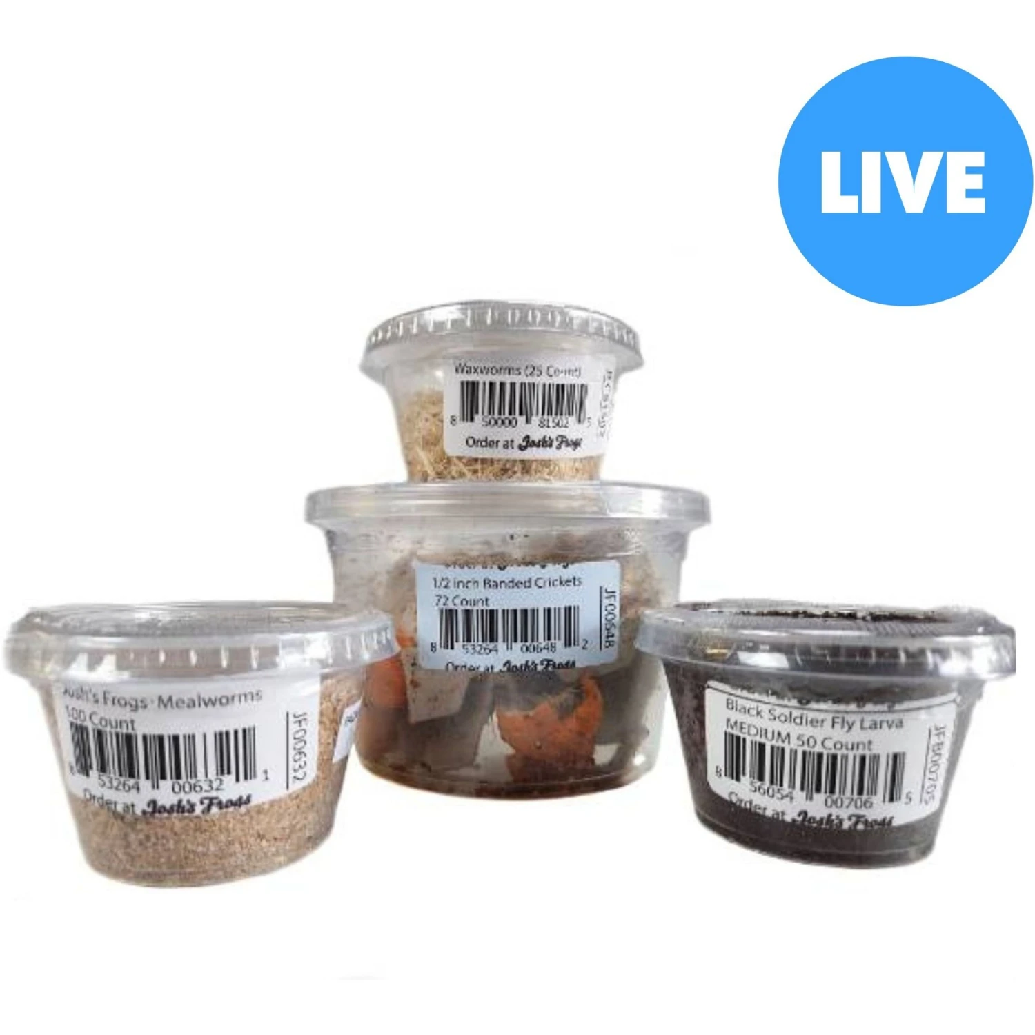 - Includes 1/2-inch banded crickets, mealworms, black soldier fly larvae and waxworms.