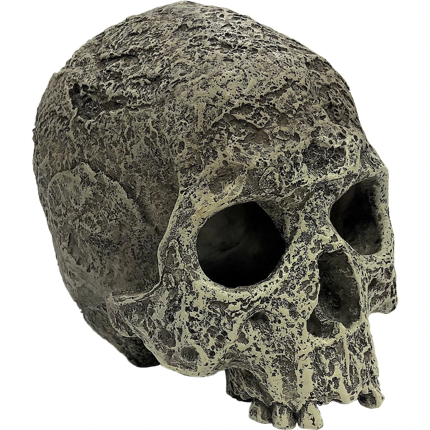 Cold-blooded critters feel safe and cozy when they take shelter in the Komodo Textured Human Skull. This hombre looks like he died a long time ago, giving your beloved herp’s terrarium or aquarium a touch of class. An essential hiding spot that makes reptiles and amphibians feel safe, this lifelike skull also enhances your pet’s decor. It’s easy to clean because it’s made of smooth resin. A hole in the back of the skull suggests that this human died of foul play, while giving your sweetie a convenient and classy place to crawl in and out! This is also great for use with aquatic turtles, terrestrial turtles, tortoises, aquatic amphibians, terrestrial amphibians, invertebrates, lizards, and snakes.