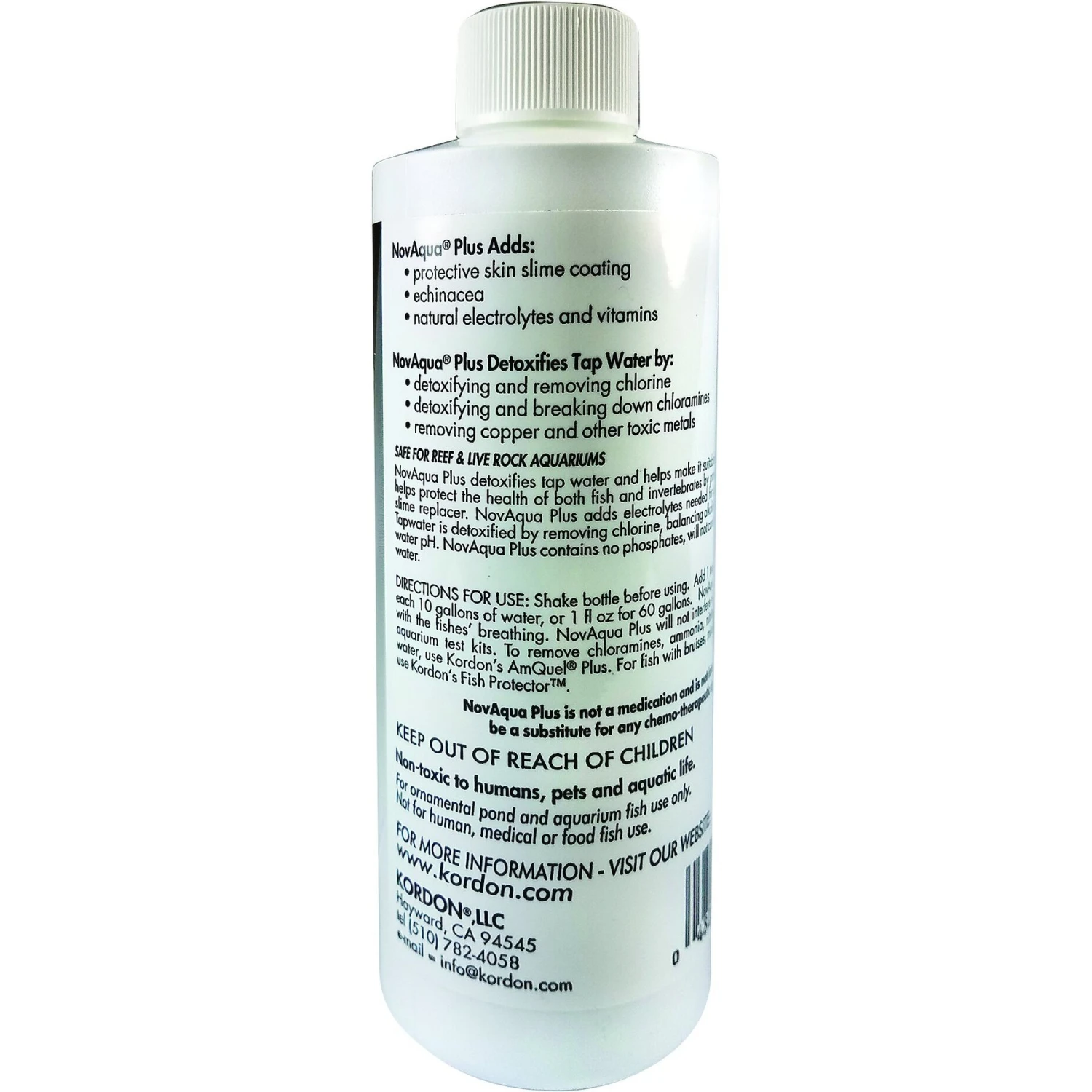 Get your tap water ready to go into your aquarium with the Kordon NovAqua Plus Aquarium Water Conditioner. This non-toxic formula works to detoxify tap water, removing all chlorine, chloramines and toxic metals like zinc, iron, copper and others, so you can safely add fish to your saltwater or freshwater aquarium. It also contains special polymer colloids that form a protective slime for fish, and electrolytes that help reduce stress levels in your tank. Plus, it helps prevent viral and protozoan infections with added herbal ingredients.