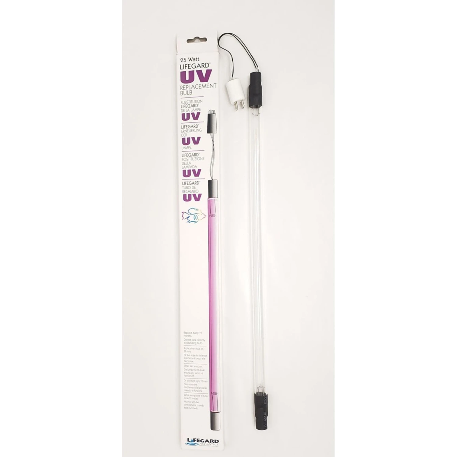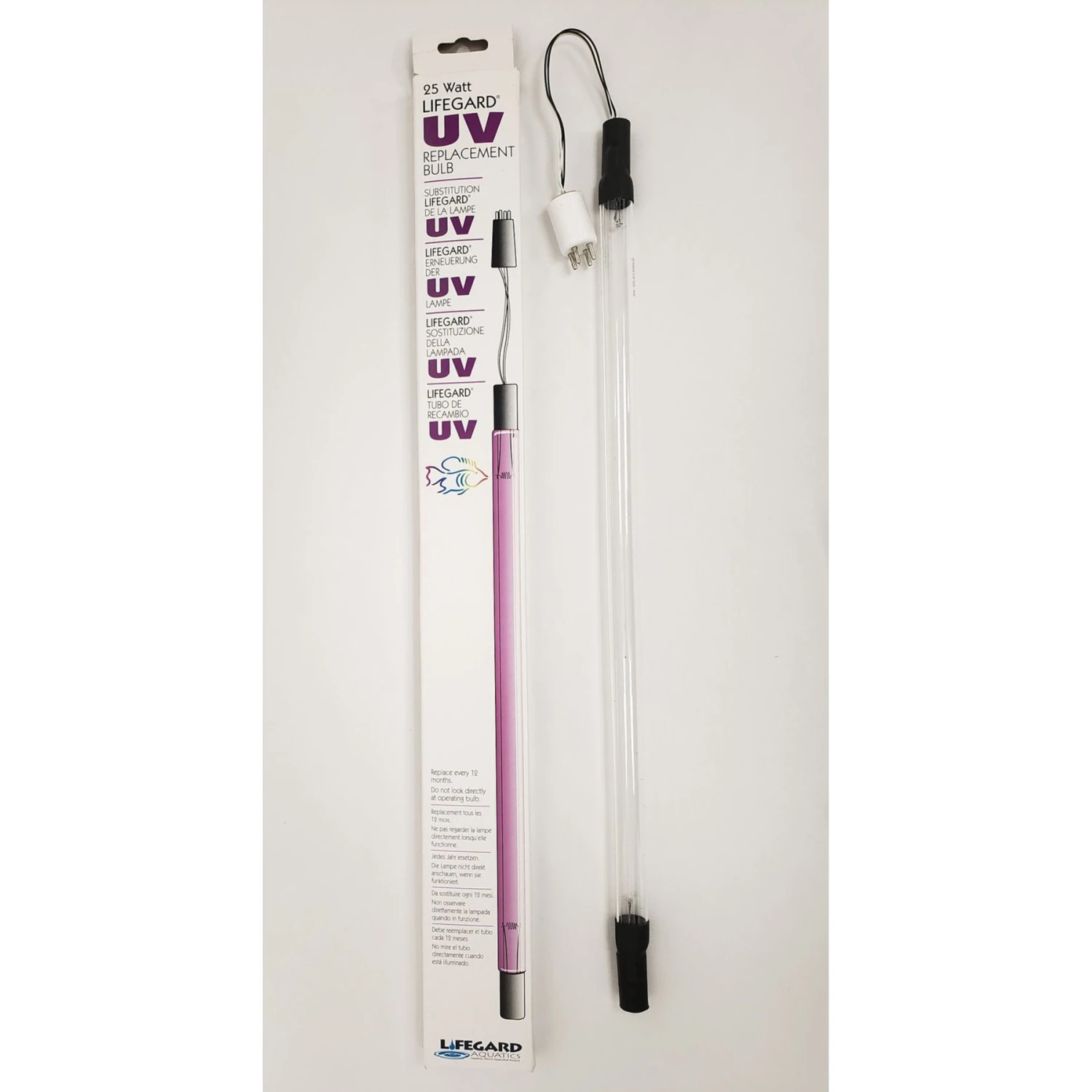 The Lifegard QL-25/AquaStep 25 Watt Quartz Bulb Replacement Part is designed for use with your Lifegard UV sterilizer (sold separately). Pure hard quartz material maximizes UV light transmission and bulb life. Four pins on one end make for an easy connection, and the pig-tail style connection drops the bulb fully into the chamber.