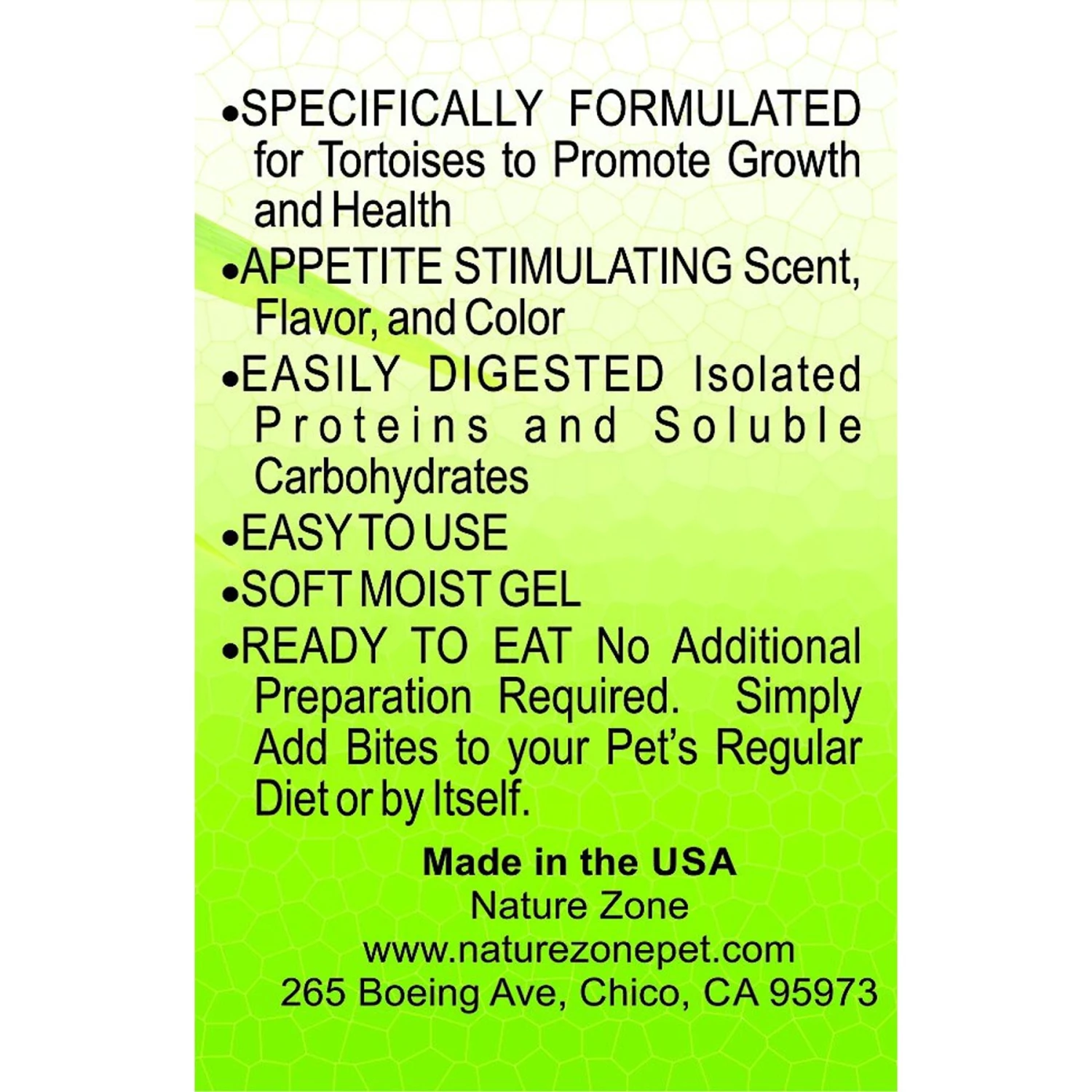 Give your tortoise the complete nutrition he needs in every bite with the Nature Zone Bites Tortoise Food. These moist, bite-sized gel cubes are formulated with easily-digestible isolated whey and soy proteins with whole eggs to support healthy growth, soluble carbohydrates and plant-derived fiber to promote intestinal health, and vitamins and minerals for overall wellbeing. It’s a natural source of easily absorbable calcium, and has a water to solid ratio that’s just like the leafy vegetables your pal would eat in the wild. Plus, it has a tasty musk melon flavor and scent that’s been proven to stimulate appetite and attract tortoises to eat. The formula is ready to eat with no pre-mixing or soaking needed.