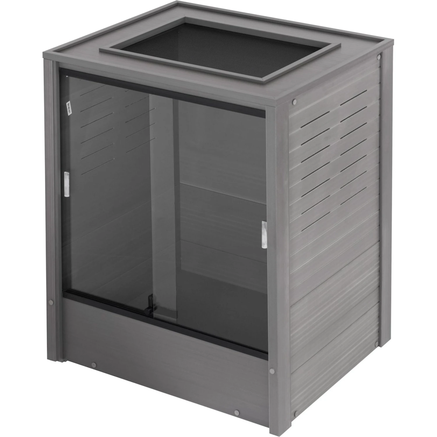 The New Age Pet Madagascar Vertical Reptile Terrarium is designed to help keep your critter happy, healthy and safe. It’s made with a durable composite of new and recycled polymers, plus reclaimed wood fiber by-products. The composite is non-toxic and eco-friendly. It’s also unaffected by moisture and odor, so it’s the perfect material to house your pet. This terrarium’s assembly is quick and easy, and there are no tools required. Its extra height is perfect for arboreal reptiles, and the deep floor means there’s plenty of space for substrate. This is also great for use with tortoises, terrestrial turtles, aquatic amphibians, terrestrial amphibians, invertebrates, lizards, and snakes.