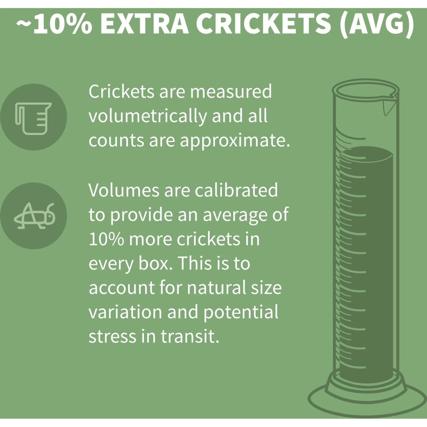 - Please note, some variation in cricket size is normal and expected. For more information regarding sizing and shipment, please click “” below and scroll down to “Precautions.”