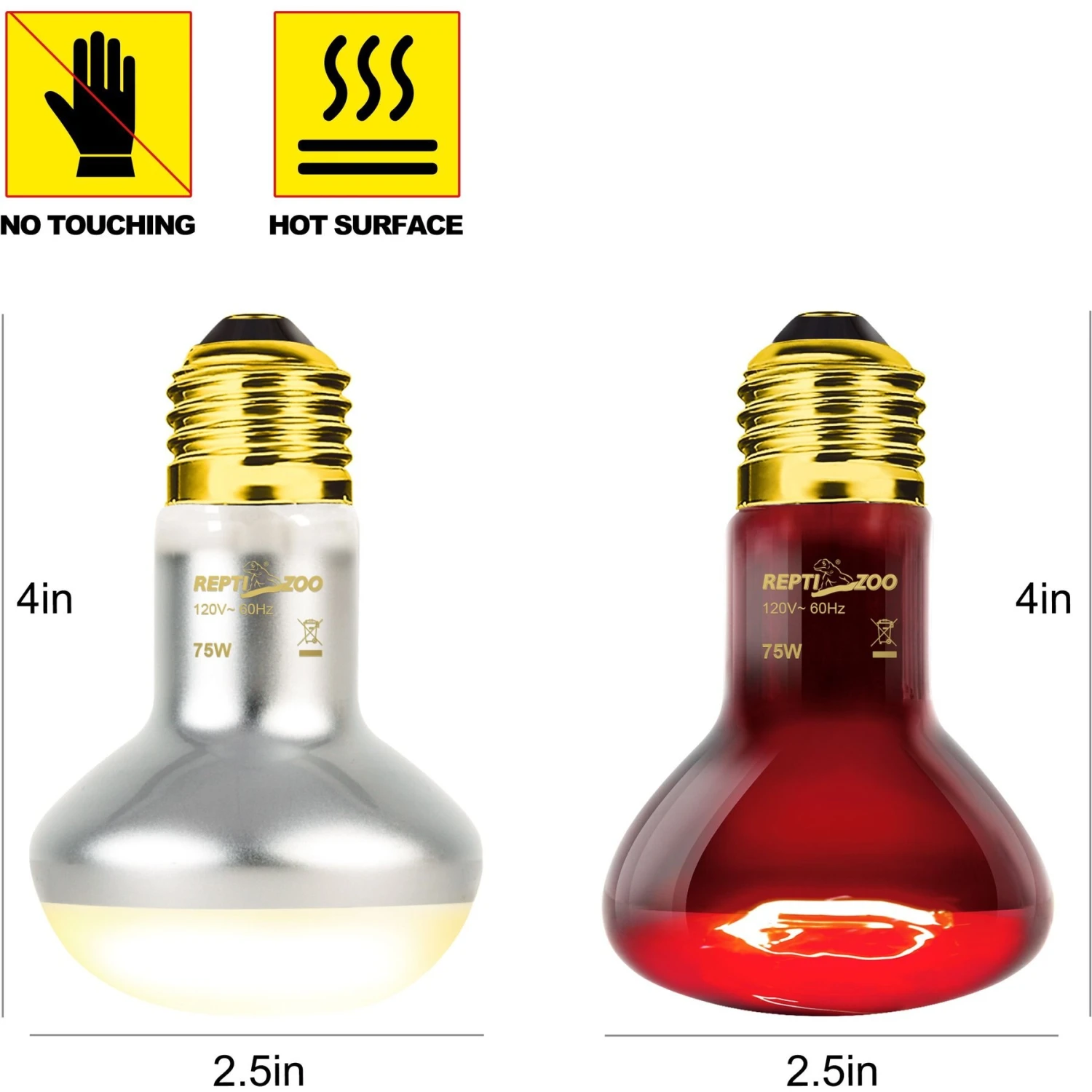 The REPTI ZOO Basking Spot Lamp & Nocturnal Infrared Heat Lamp-75W Reptile Bulb can help to keep your little critter warm and cozy. The heat bulb emits infrared heat waves and can be used 24 hours a day. It won’t disrupt your reptile’s normal activity during the day or night. A built-in reflector directs the heat in any direction needed. The red glass transmits infrared waves that the special filament produces. Designed to be efficient, you can use the bulb for over 2,000 hours before replacing it. It’s a fantastic choice for reptiles, amphibians, birds or small animals. This is also great for use with Aquatic Turtles, Terrestrial Turtles, Tortoises, Aquatic Amphibians, Terrestrial Amphibians, Invertebrates, Lizards, and Snakes.