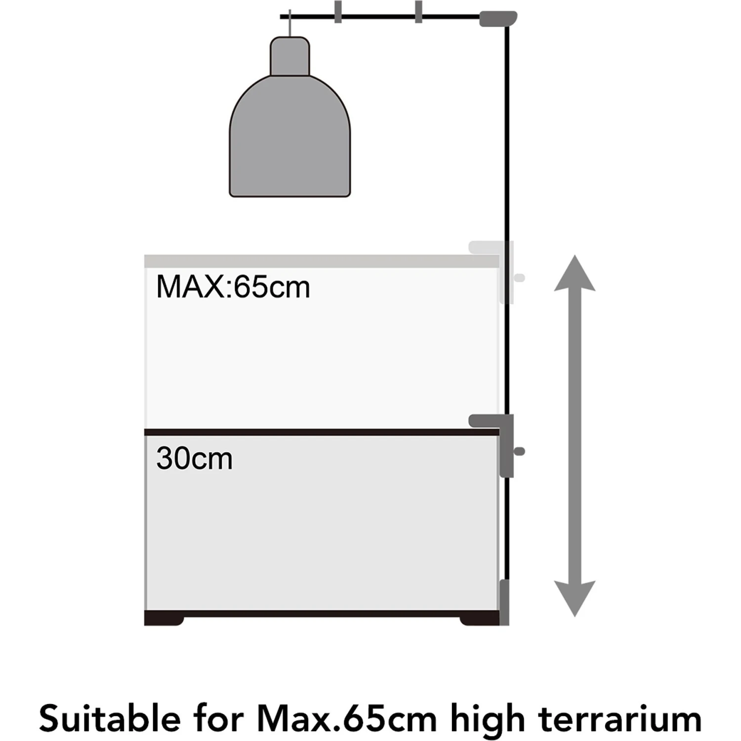 Safely and securely attach up to two reptile lamps with the REPTI ZOO Double Hanger Reptile Terrarium Lamp Stand. This sturdy stand clamps firmly to the top and bottom of your terrarium to prevent dangerous tips and unnecessary movement of your lamps. The height adjusts from 11.8 to 23.6 inches to accommodate different terrarium heights and can even fit taller tanks using the included* extension tube. Use it with one or two lamps and easily adjust their positioning to fit your needs—it comes with two adjustable swing arm holders and clamps to put your heat and light exactly where you need them. Help your buddies get the sweet heat and light they need with this solid lamp-mounting solution! This is also great for use with Aquatic Turtles, Terrestrial Turtles, Tortoises, Aquatic Amphibians, Terrestrial Amphibians, Invertebrates, Lizards, and Snakes.