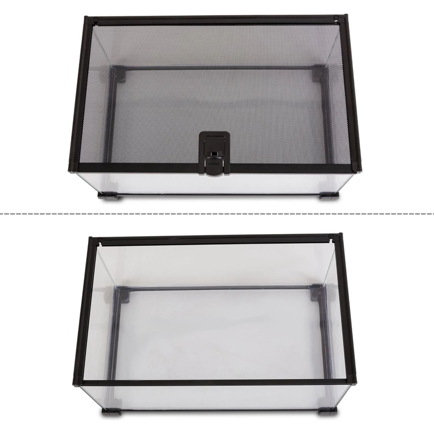 - Full screen top has a feeding hole for safe and easy feeding, ventilation, and light and UVB penetration.
