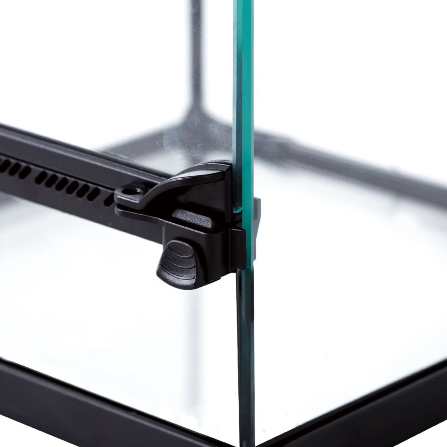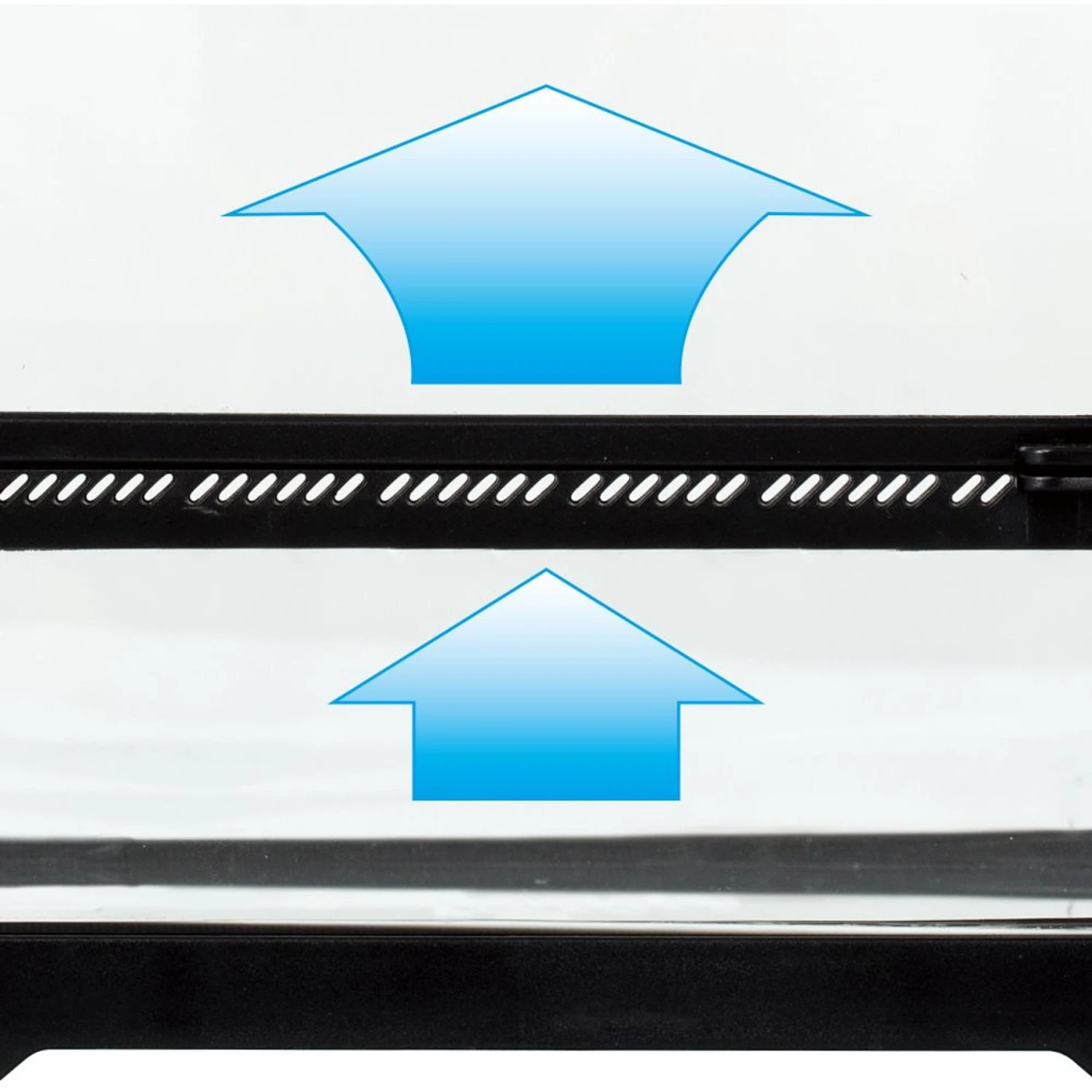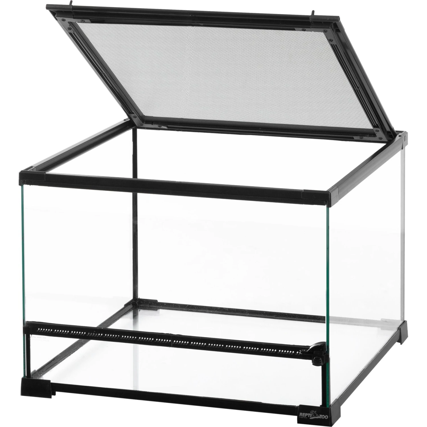 House your reptilian or amphibian friends in comfort and style with REPTI ZOO Ventilated Reptile Glass Terrarium! This sturdy, hygienic setup is easy to clean with its removable, aluminum screen top, which provides your pals with plenty of ventilation while allowing light to permeate through. Plus, the screen has specialized inlets for tubing and wiring, so you can customize your terrarium as needed. The hinged doors lock for added safety—additionally, the doors are watertight, so you can have a pool for your more aquatically inclined pals. You can easily open the front door for convenient maintenance and feeding as well. The front window has additional ventilation spots, which is especially helpful in preventing a harmful buildup of pathogens and carbon dioxide. This insulating, glass setup is ideal for keeping your little buddies safe, warm, and moist! This is also great for use with Aquatic Turtles, Terrestrial Turtles, Tortoises, Aquatic Amphibians, Terrestrial Amphibians, Invertebrates, Lizards, and Snakes.
