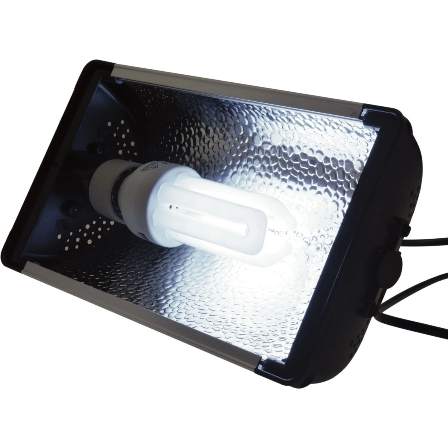 Reptiles, amphibians, and birds alike are sure to enjoy using the Reptile Systems Kit. This lighting kit is ideal for heating and lighting a variety of enclosure types for a variety of pets (lamp not included.) It features removable safety mesh, an inline on/off switch, a high performance aluminum reflector and a holder. Designed with versatility and usability in mind, the unit can be situated inside or above an enclosure and is multidirectional. Whether your companion molts their skin or their feathers, this kit makes a great light source for his home! This kit can be used with compact spiral lamps and compact 3u lamps.