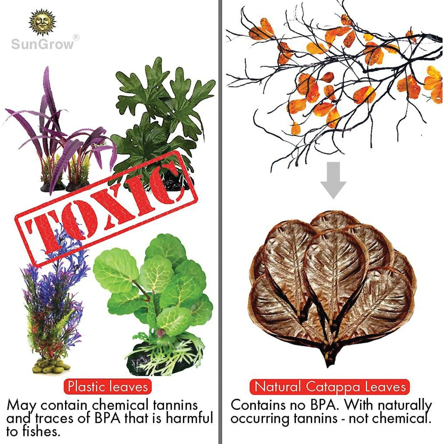 - Organic Catappa leaves that provide your aquarium with all-natural benefits. Rich in tannin and humic acids for the right pH level and adds beneficial minerals to your tank.