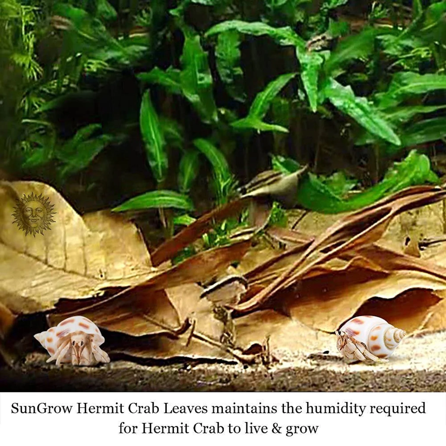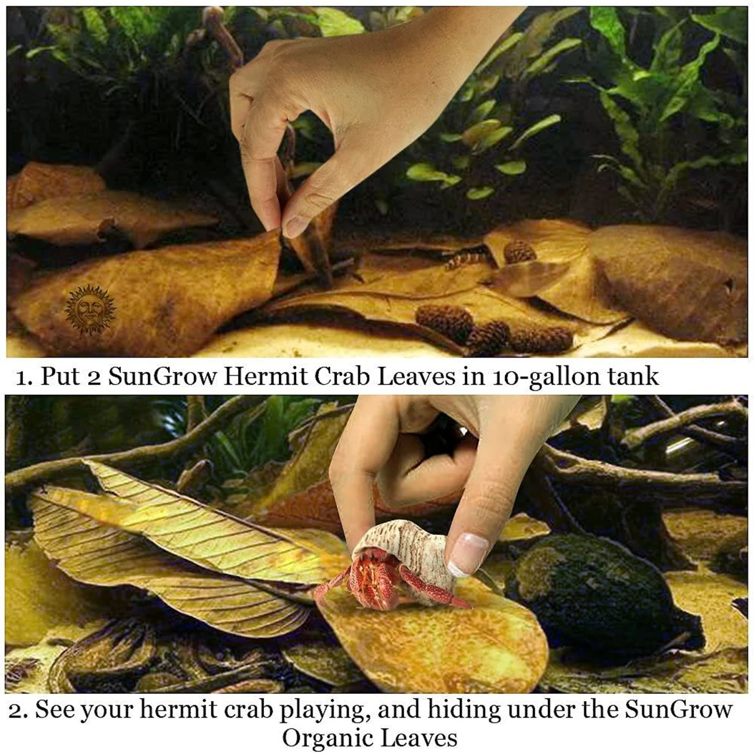 Hermit crab parents know their little friends love to climb and hide under in their tanks, so decorating the tank with SunGrow Hermit Crab & Snail Catappa Leaves, Dried Treat & Mineral Supplement are sold separately. These leaves provide a cozy, moist environment in which your hermit crabs will thrive. Additionally, maintaining the appropriate humidity in your “crabitat” is crucial, and these leaves help retain moisture and keep humidity levels high.