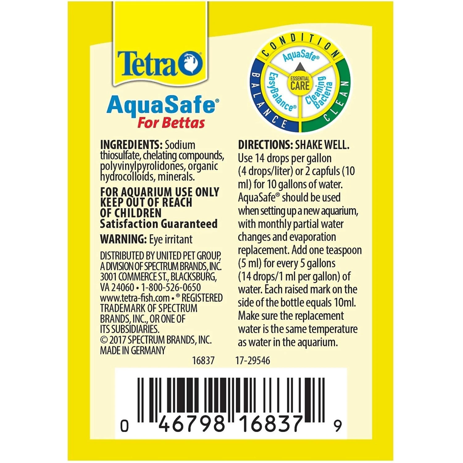 Make your Betta’s aquarium water safe and healthy with Tetra BettaSafe Aquarium Water Conditioner. Tap water contains chlorine, chloramines and heavy metals which are harmful to Bettas and other fish. Tetra BettaSafe Aquarium Water Conditioner neutralizes these toxins in seconds so you can add your Betta to his aquarium. It also contains a protective slime coating to reduce stress.