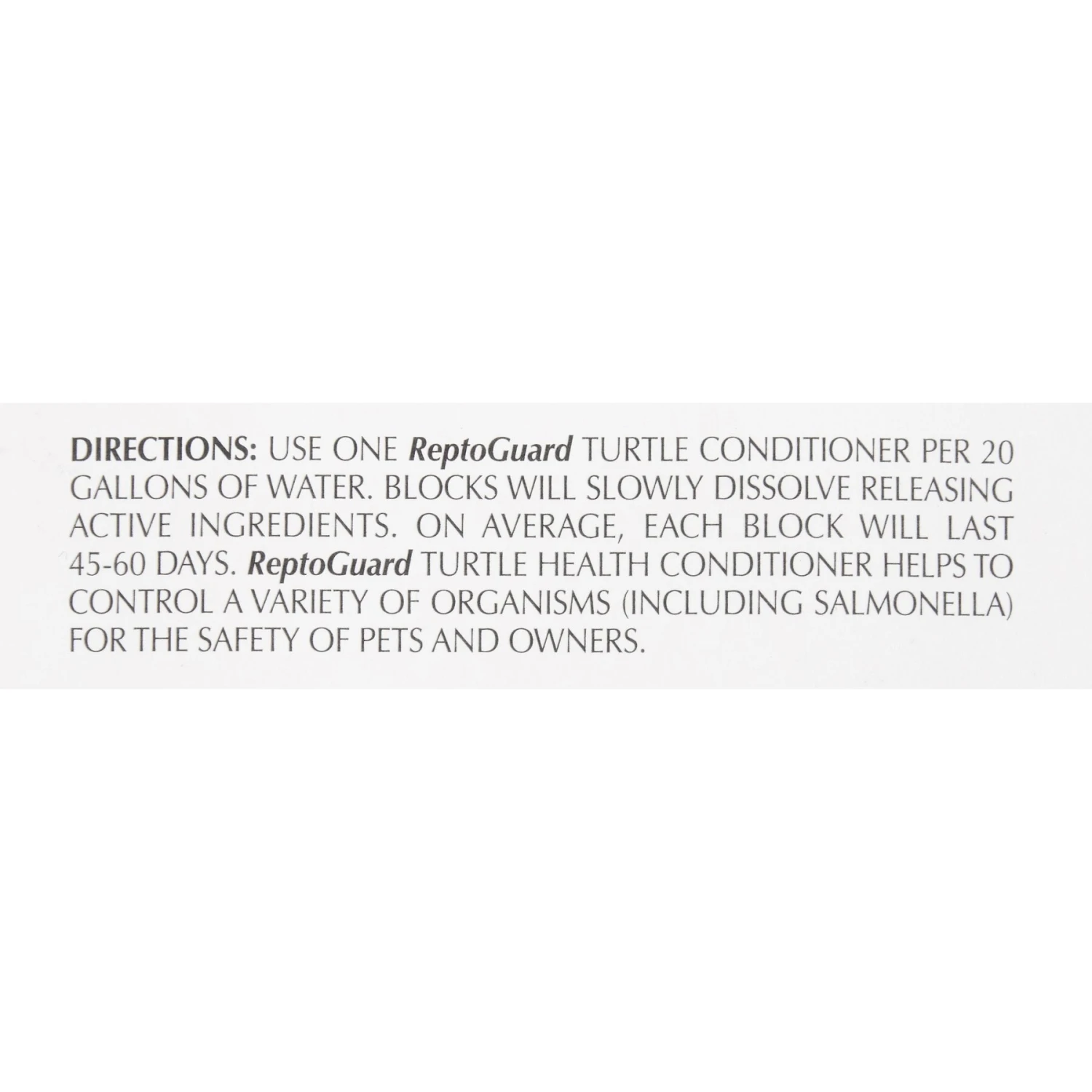 Use one ReptoGuard Turtle Conditioner per 20 gallons of water. Blocks will slowly dissolve releasing active ingredients. On average, each block will last 45 – 60 days. ReptoGuard Turtle Health Conditioner helps to control a variety of organisms, including salmonella; for the safety of pets and owners.