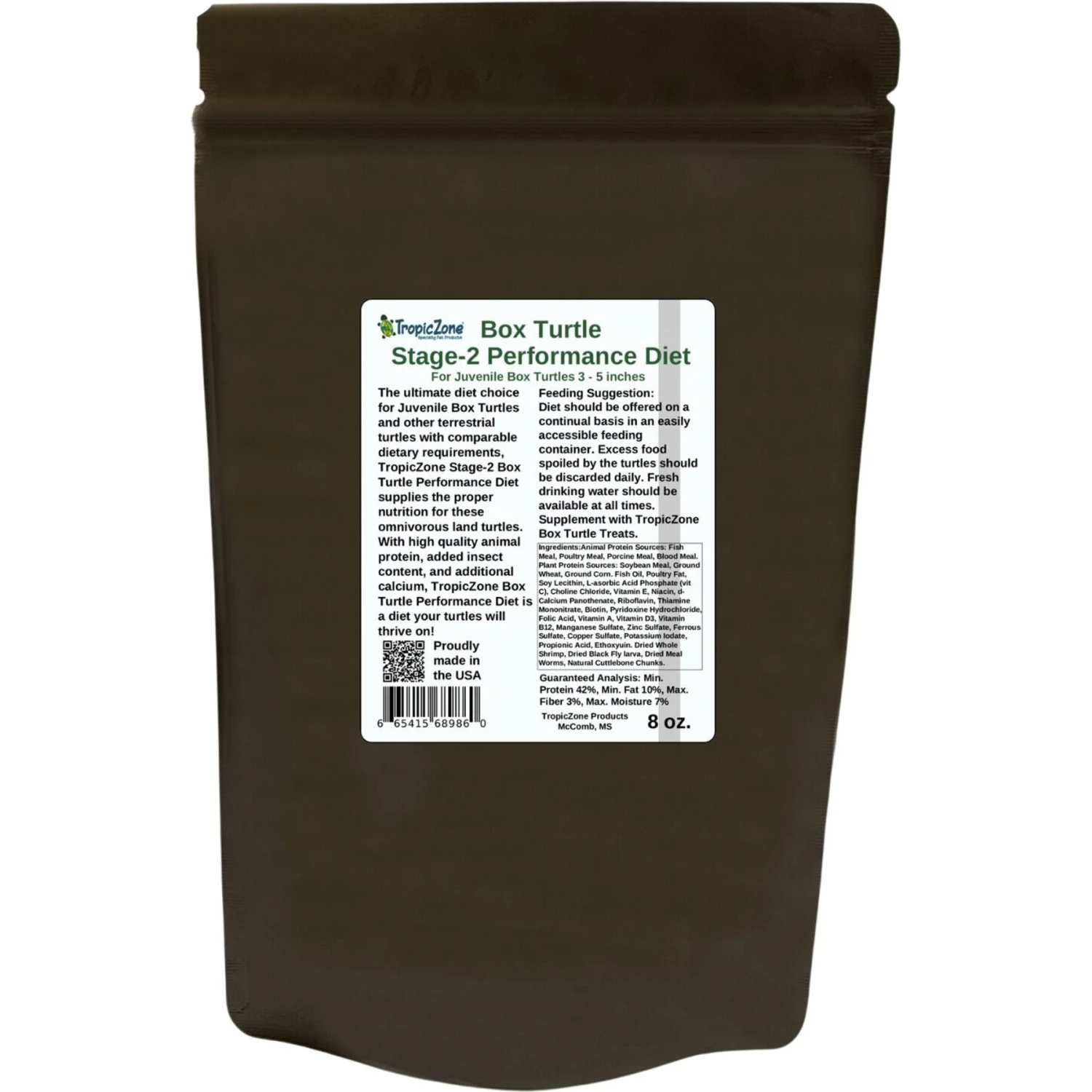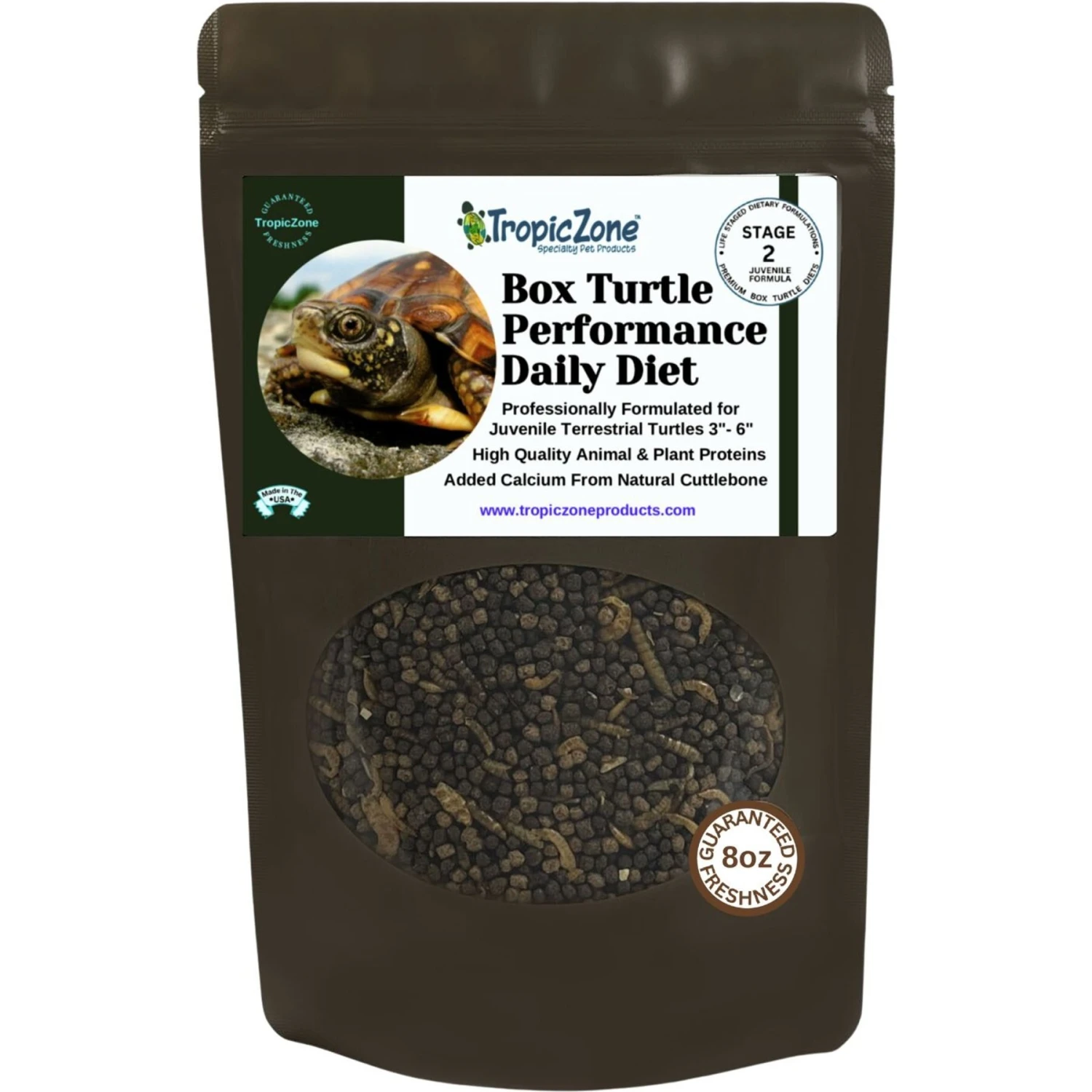 Give your juvenile box turtle the nutrition he needs to thrive with TropicZone Box Turtle Performance Daily Diet Stage 2 for Juvenile Turtles Food! This specially formulated diet is designed to meet the specific dietary needs of young box turtles 3” to 6” in size. It’s packed with high-quality animal and plant proteins, tasty nutritious insects and shrimp, and added calcium from natural cuttlebone. Plus, there are no artificial colorants or flavorings, so you can be sure that your little buddy is getting the best nutrition possible.