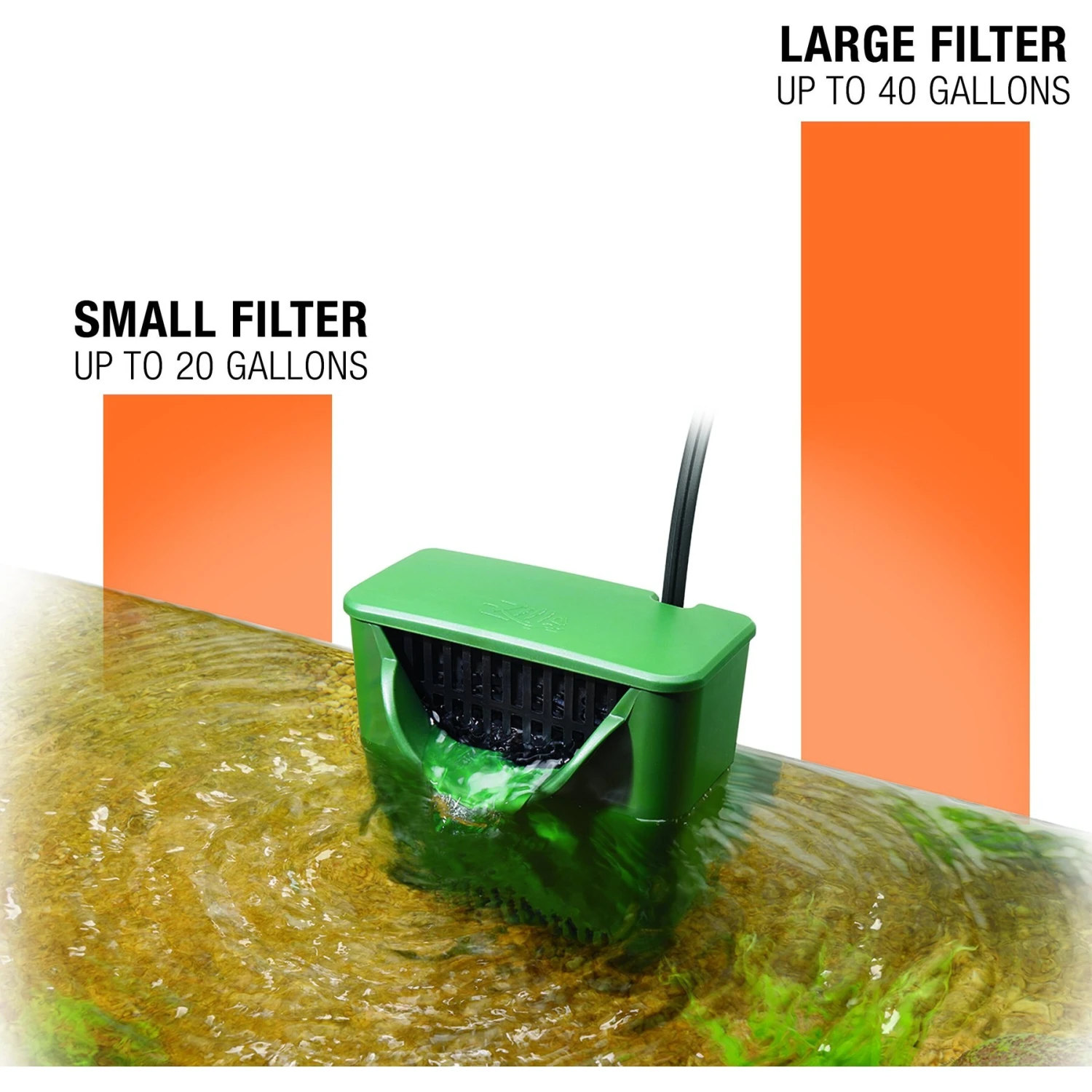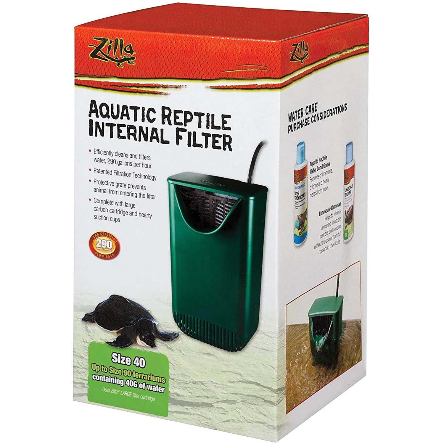 Keep your underwater buddies going strong with the Zilla Aquatic Reptile Internal Aquarium Filter. Designed for terrariums that hold turtles and other aquatic animals, this filter comes with a replaceable carbon cartridge that removes odor, waste and debris from water. It is easy to install and includes a protective grate so your pet cannot enter the filter. Zilla Aquatic Reptile Internal Aquarium Filter fits tanks up to 40 gallons.