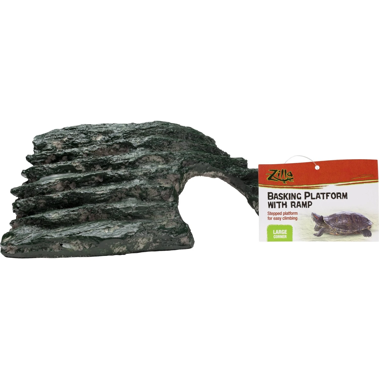 Zilla’s Basking Platform Corner Reptile Ramp provides your pet with the perfect area to either bask in healthful UV light by climbing up to the flat top or burrow and stay shielded underneath. Cold-blooded reptiles regulate their body temperatures instinctively and this platform helps them do that. It’s the perfect addition to a variety of pet homes including desert and aquatic environments. The platform is expertly hand-crafted to give the appearance of natural river rock and it’s easy to clean. To keep it in tip-top shape, simply use a mild soap solution and rinse it clean!