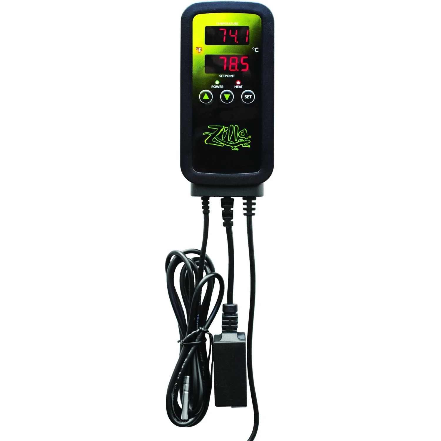 Keep your basking buddy living his best life with the Zilla Digital Temperature Controller. This digital controller for terrariums is engineered to adjust the temperature of your amigo’s enclosure by controlling the heating element. It is ideal for use with heat pads, ceramic heat emitters, heat tape and more. This digital temperature controller helps keep your scaly sidekick safe by reducing the risk of burns or overheating. It is crafted to control up to 1000-watts and is equipped with three power outlets for all your pet pal’s accessories.