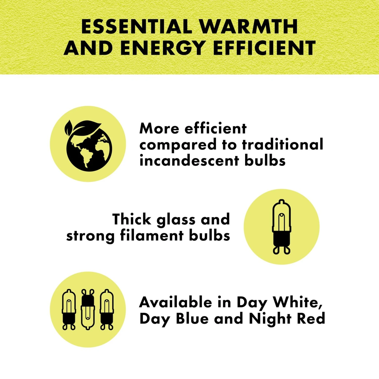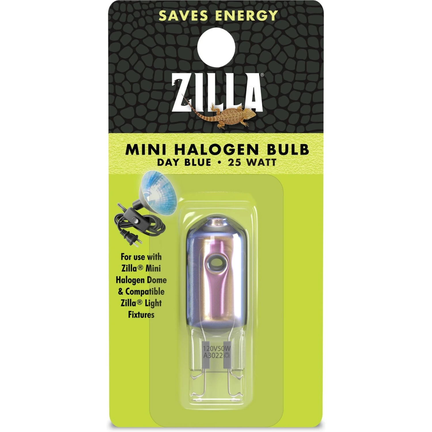 The Zilla Mini Day Blue Halogen Bulb for Reptile Terrariums is an energy-saving halogen replacement bulb for your terrarium’s heating fixtures. It can be used with the Zilla Halogen Mini Dome, Heat & UVB Basking Fixture and Mini Heat & UVB Fixture. This tiny bulb provides spot heating and blue light to keep your reptiles warm and comfortable. It’s 250% more efficient than incandescent bulbs, plus it’s more compact, so it takes up less space on the top of your terrarium.