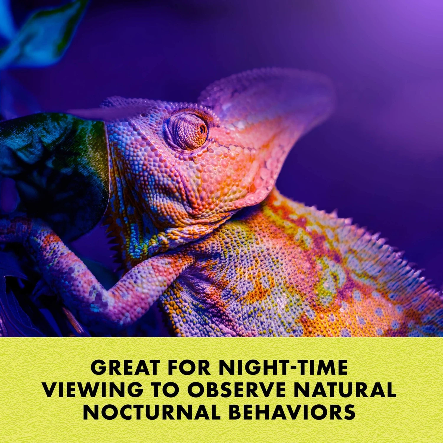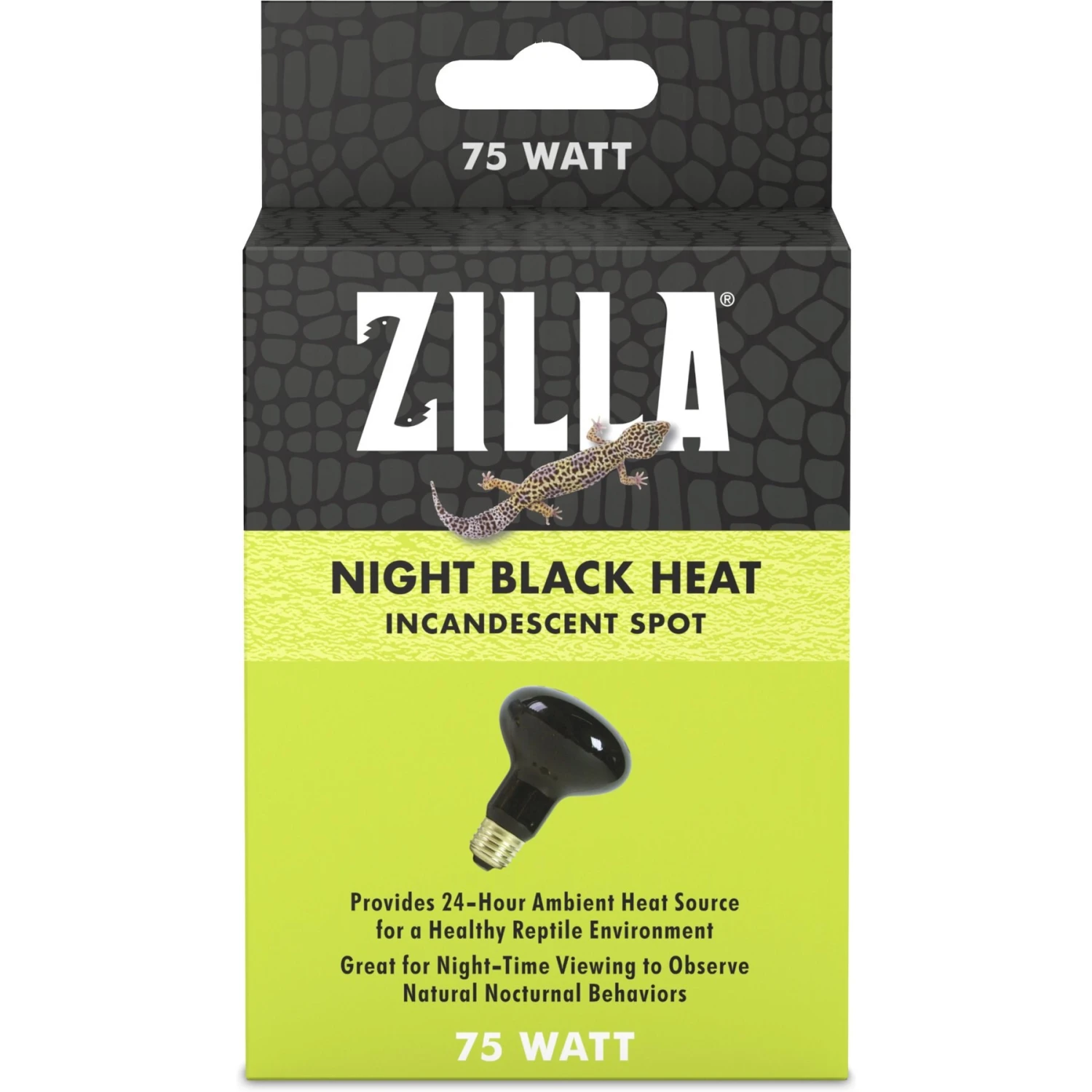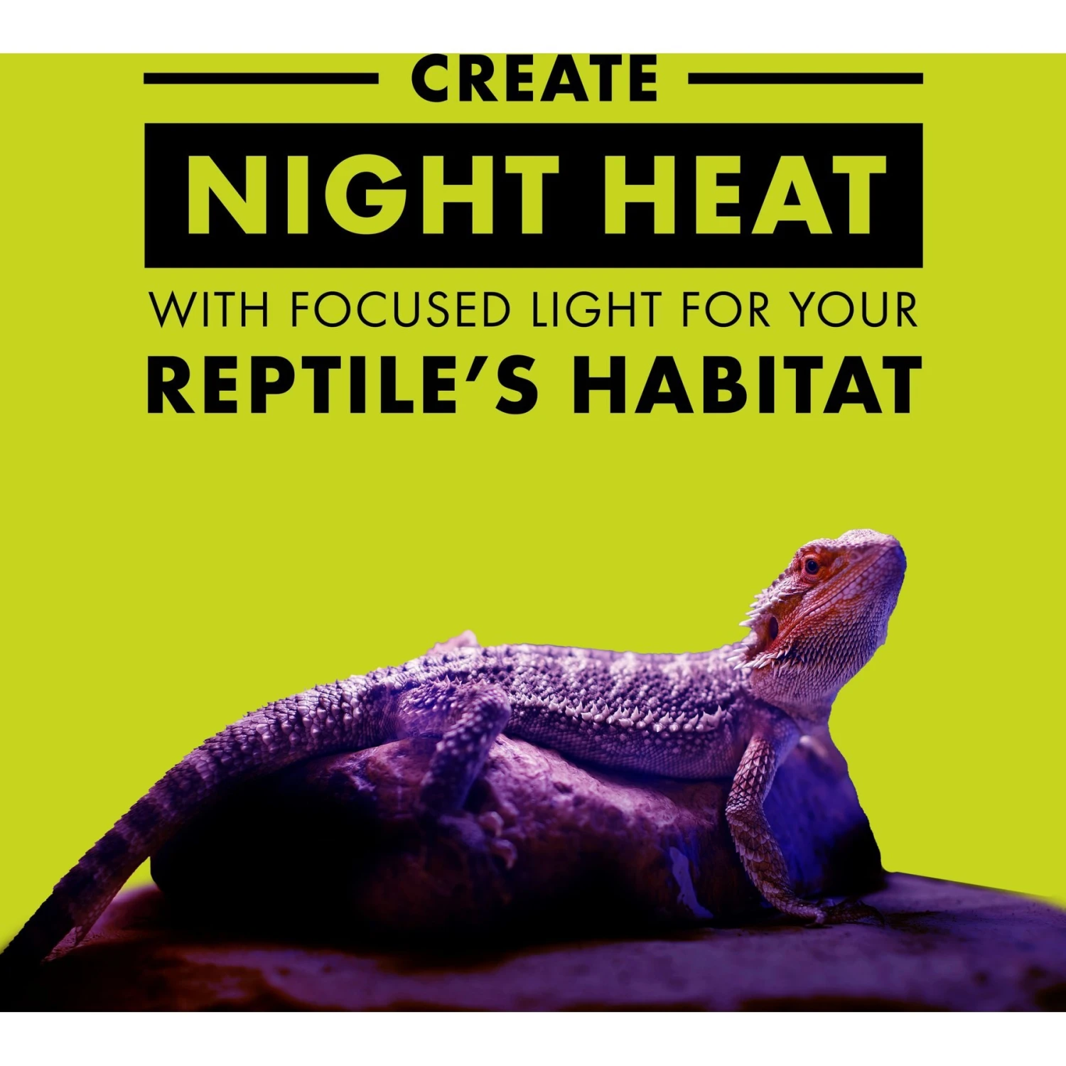 Ideal for tropical and desert habitats, Zilla Night Black Heat Incandescent Reptile Bulb provides focused heat where you need it. Photons emitted by the filament are trapped by its dark tint, with little visible light shining through. The spot bulb provides a focused beam of energy to heat the air inside the enclosure, creating the warmth needed for a healthy reptile environment. This bulb is made from glass containing rare earth-black phosphors to simulate the moon’s natural glow, for nocturnal viewing without disturbing your reptile’s day and night cycles. The heavy-duty filaments yield many hours of peak performance.