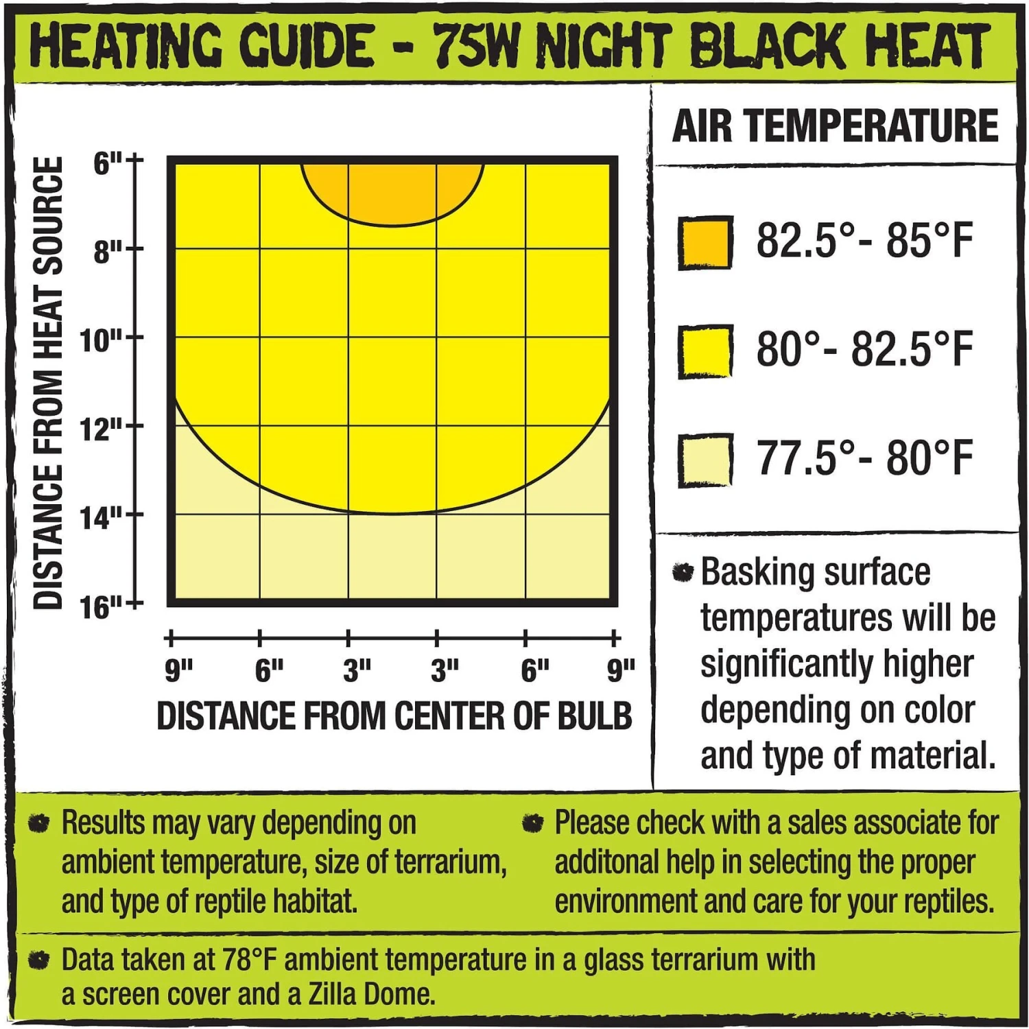 Your scaly sidekick can rest easy when he’s warmed by his Zilla Night Black Incandescent Reptile Terrarium Lamp. The 100 watt bulb features heavy-duty filaments that yield more hours of service than average filaments—providing ambient heat and creating a healthy environment for your pal. Recommended for use with Zilla Reflector Domes (sold separately).