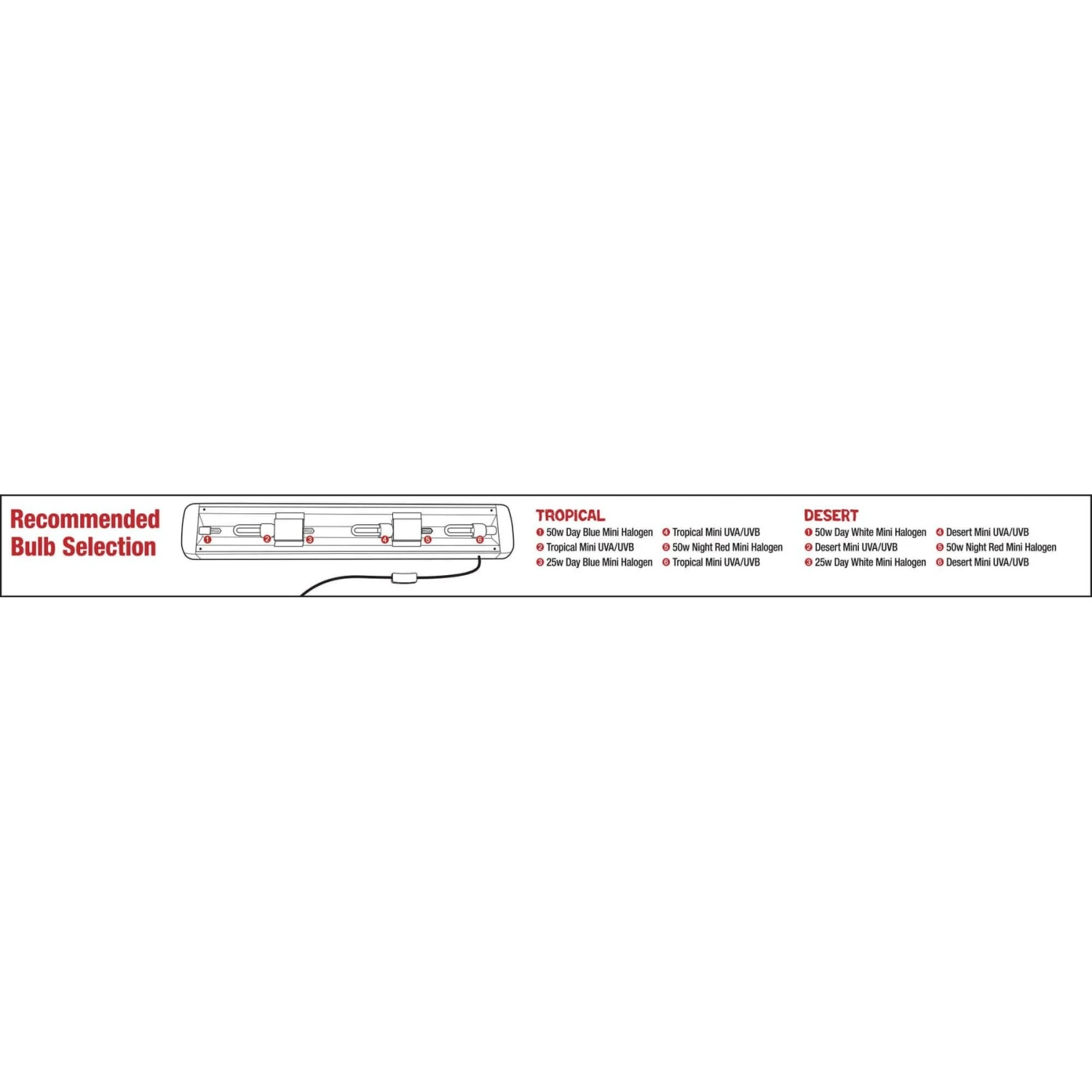 Bulbs not included. See picture for recommended tropical and desert bulb configurations.