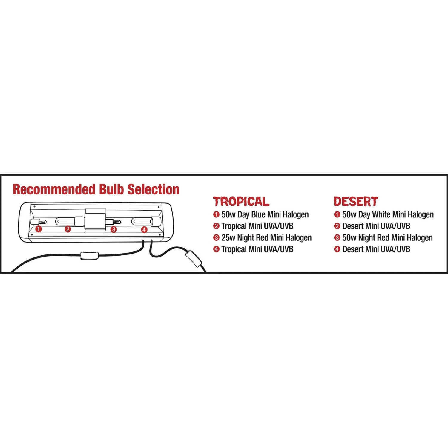 - Fills your pet’s terrarium with heat, UVA and UVB.