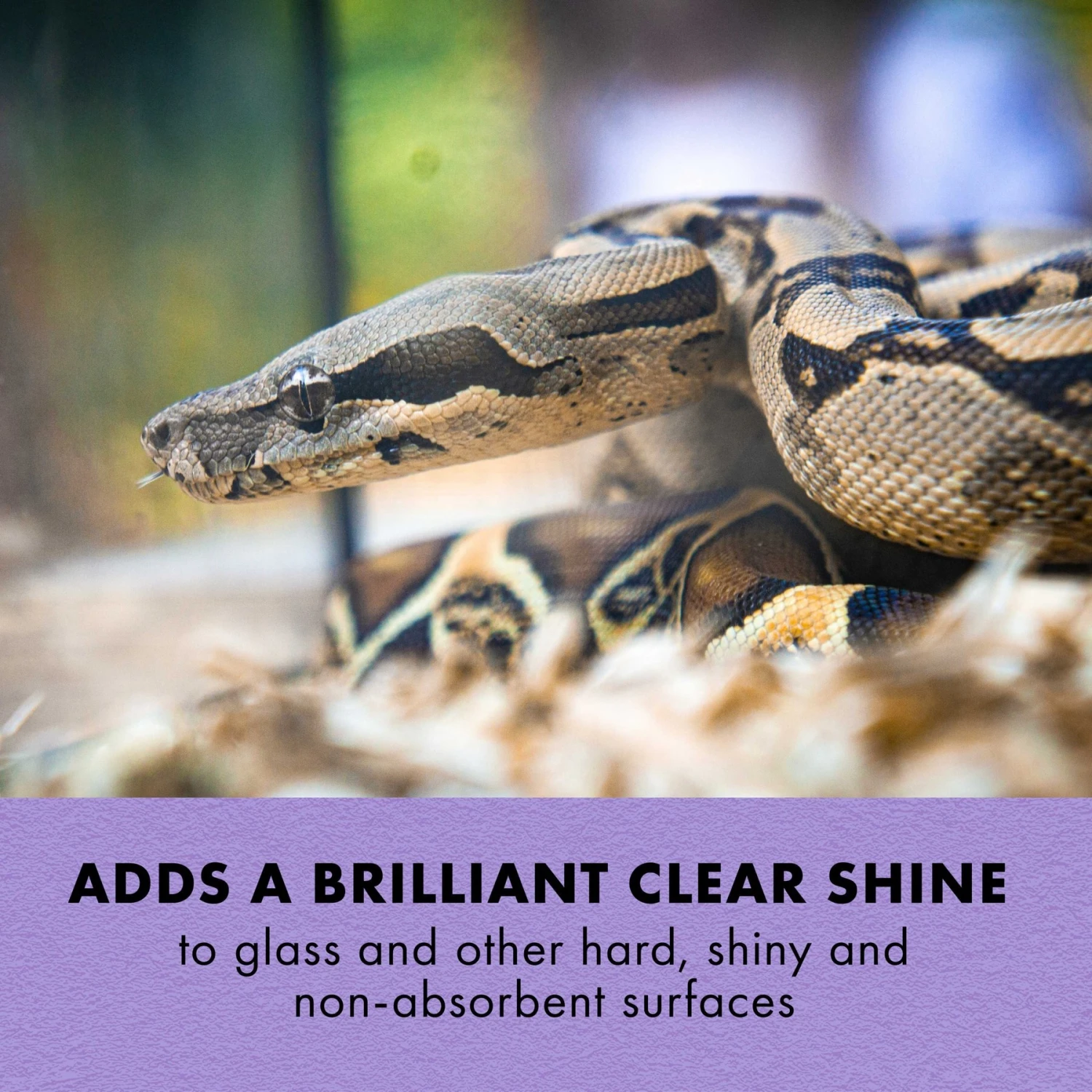 Zilla Terrarium Cleaner adds a brilliant, clear shine to glass, acrylic or any hard, shiny and non-absorbent surface. The natural formula contains no toxins, fumes or residues. It also features a non-toxic deodorizer and anti-static ingredient to help control dust buildup. Enjoy a great, long-lasting view of your tank with Zilla!