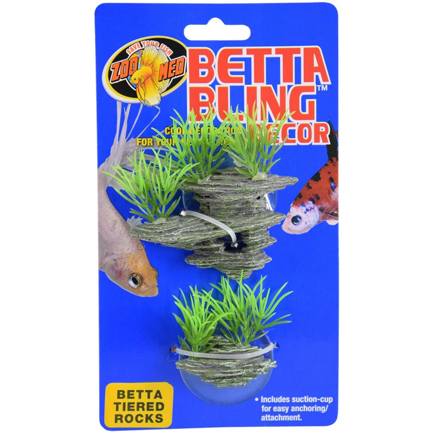 With the Zoo Med Betta Bling Tiered Rocks, you can make your betta’s aquatic home look fin-tastic. This decoration will look great in any aquarium. Its naturalistic design will work well along side your other decorations and plants, and your finned friends will have a beautiful piece to enjoy and hide behind. The included suction cup makes it easy to attach the decoration to any glass wall.