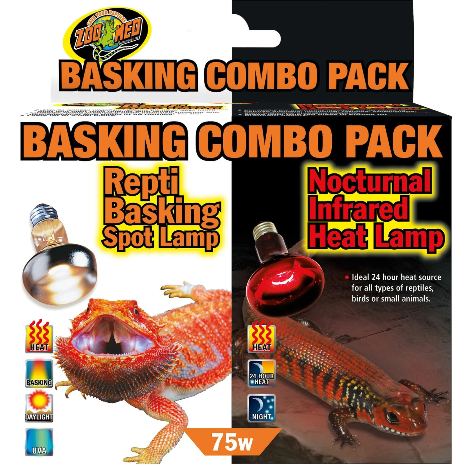 Set your scaly sidekick up for success with the Zoo Med Repti Basking Spot Lamp & Nocturnal Infrared Heat Lamp Reptile Combo Pack. This convenient combo pack includes two different bulbs for your cold-blooded buddy. It contains a basking lamp to keep him warm during the day and an infrared heat lamp to keep him cozy throughout the night. The basking lamp is designed using a double reflector that focuses 35% more light and heat than some other bulbs.