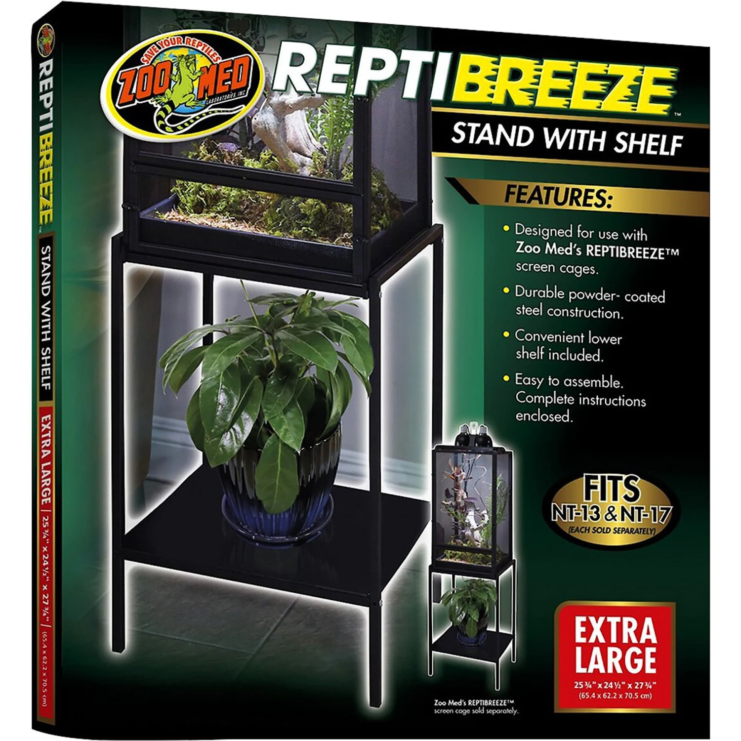 Put your scaly pal on a pedestal with the Zoo Med ReptiBreeze Stand with Shelf Reptile Cage Cover. This sleek stand was made to proudly display your Zoo Med ReptiBreeze screen cage (sold separately). It’s made with durable, powder-coated steel to ensure that your reptile and carefully curated terrarium stay safe. The convenient lower shelf lets you store supplies close by or add plants and decor to make a statement. Plus, it’s easy to assemble in minutes.